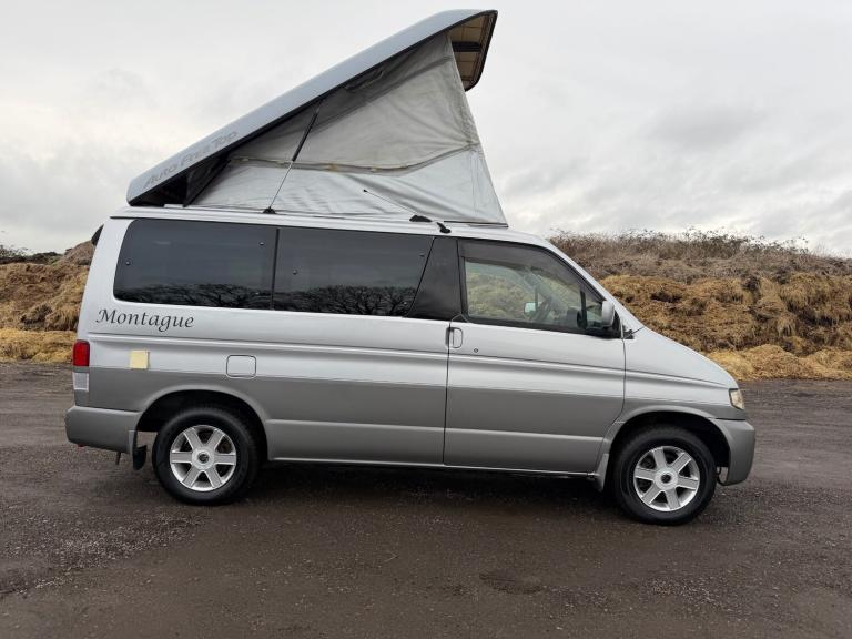 An exceptional example of the Mazda Bongo Montague Friendee Automatic manufactured 11th June 1999 and first registered in the UK 1st September 2008 and now with only 2 former owners. In green and silver with grey upholstery. Bodywork is exceptional and the luxury interior has no signs of wear and tear. This is the popular 2.5 Diesel model with electrically operated pop up roof. 5 seats. Sleeping for 4. Full kitchenette with sink, fridge and cooker. Electrically operated blinds. Dual Zone Aircon. Kenwood radio. 2 keys with remotes. Full service history. Cambelt replaced 33k miles. Brand new MOT. New Habitation and Gas safety checks with Certificate