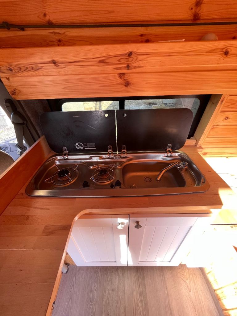 Lovely converted ford transit camper. Starts on a dime. Low mileage for age. Drives beautifully. Wooden panelled, loads of storage, fully fitted kitchen, comfy double bed.