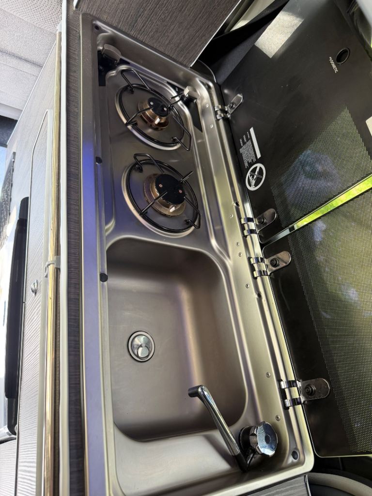Two ring gas hob and sink