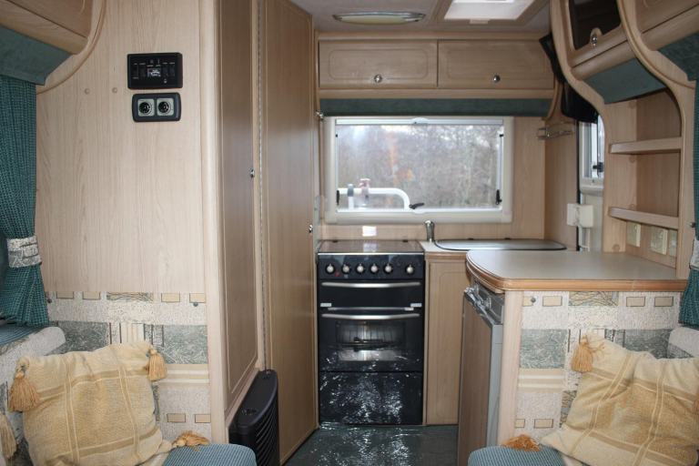 Sunroof; TV Aerial; End Kitchen; Cooker; External Side Lockers; 12V Lighting; Central Seating Group; Blinds; Grill; Awning; Double Glazing; Sink; Oven; 240V Lighting; Hand Washbasin