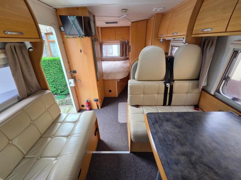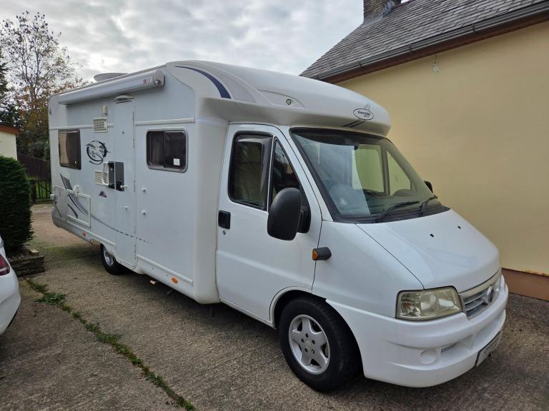 Motorhome Depot are pleased to present this excellent 2005 Geist Toring 65 4-berth,4-belt motorhome. Based on the Fiat Ducato, it is powered by the 2.3 diesel engine and 5-speed manual gearbox.Having only covered 81000 miles with 4 owners, it comes with a fresh MOT and some service history including a cambelt change and service in November 2024 so the next owner can have complete peace of mind. It has a GVW of 3500kg with a payload of around 500kg so it can be driven on a standard UK licence and is 6.77m long making it very easy to handle on those tricky campsites.Geist are a German brand who are owned by the Hymer group so all their motorhomes have the usual excellent German standard of build that Hymer have become famous for over the years. The Geist brand was created by Hymer purely for the UK market in order to bring all the benefits of German manufacturing to a traditional British motorhome so any owner of this particular model can be assured that it is a very solid piece of kit.This motorhome has also has some great upgrades that really boost its off-grid capability and general comfort levels -2 x Solar PanelsInverterAlong with the Truma heating, the motorhome has a diesel heater which runs off the engine diesel.Front screen coverBespoke awning sides and front which fits to the windout awning creating a huge external area.Security locksReupholstered Leather seatsTV,Microwave and Air Fryer includedThe van has a very popular layout having the rear fixed double French bed with generous storage underneath. The comfortable dinette is equipped with an extending dining table and can accommodate up to 6 guests with the 2 swivelling front seats making a great social area and easily converts to a double bed if required to provide further sleeping for 2 . Along side the bed is a spacious washroom which is equipped with a separate shower area,sink and toilet and the kitchen comes complete with a fridge with freezer compartment, a 3 burner hob and sink. Early viewing is highly recommended because these Geist motorhomes are very rare and soughtafter in the UK and we consider this to be as good as an example as you will find at this price point. It would make an ideal starter home for people who would like to dip their toes into the world of Motorhoming or for experienced motorhomers. For any more information or to view the extended picture file and walkround Video or to arrange a viewing please contact Matthew on the details provided.The Motorhome is located near Pontllanfraith in South Wales. Finance,Warranty and P/ex are available and Motorhome Depot can offer 30 day insurance on purchase.