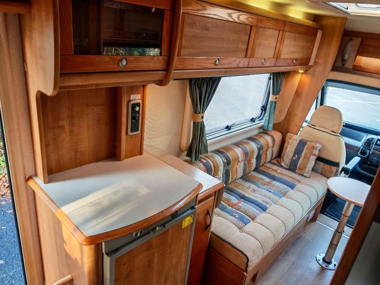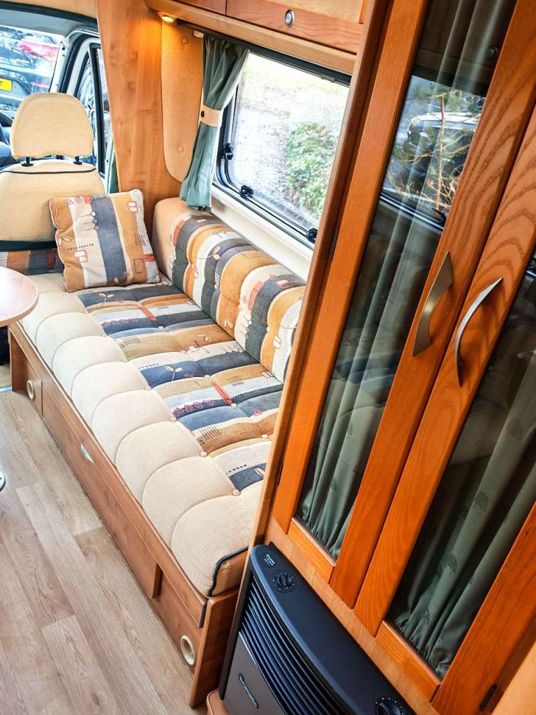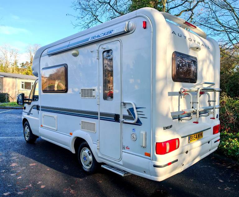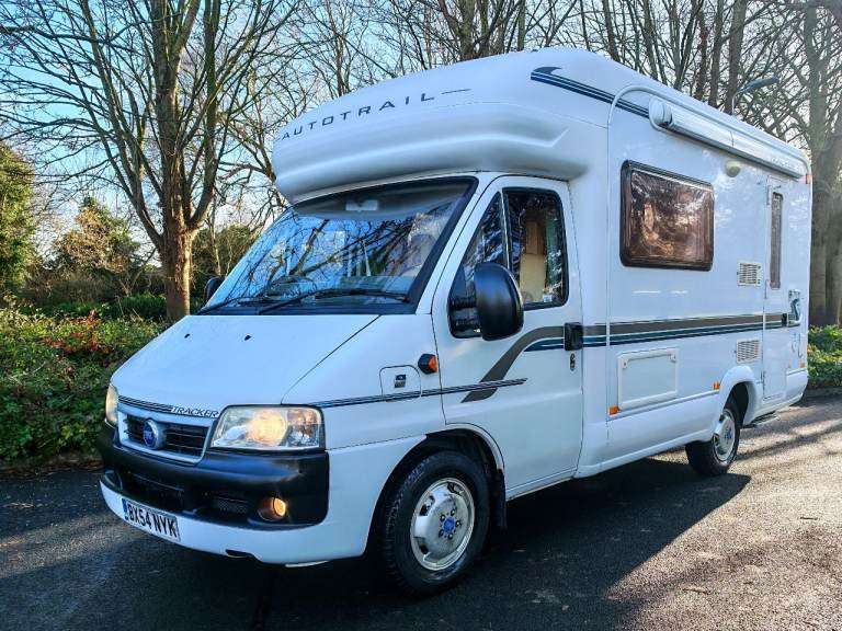 Stunning Auto-trail Tracker SE 2 berth 2 belts. This spacious motor home has a lot to offer. As you enter the side door to the right you have a well equipped kitchen with sink, drainer, oven, grill, The kitchen also offers you plenty of storage with cupboards below and overhead with a fridge with freezer. To the left of the kitchen is a spacious washroom with the very much desired separate shower cubical with sky light and window. Moving to the front is the lounge area that is a really good size. This area also makes in to either two long single beds or a large double. Comprehensive service history. Other great features Outside BBQ point, bike rack, Spare wheel electric habitation step, wind out built in awning, gas locker big enough for 2 gas bottles.
