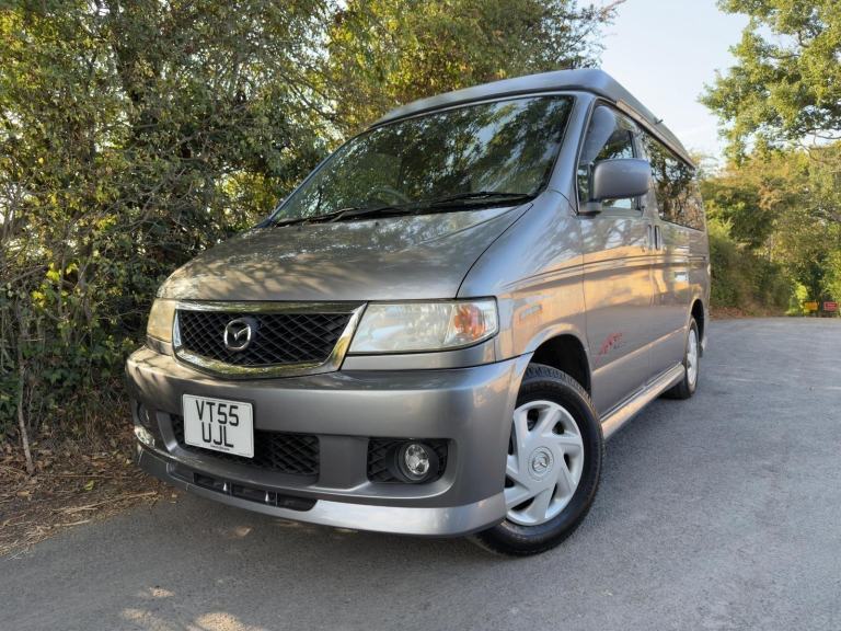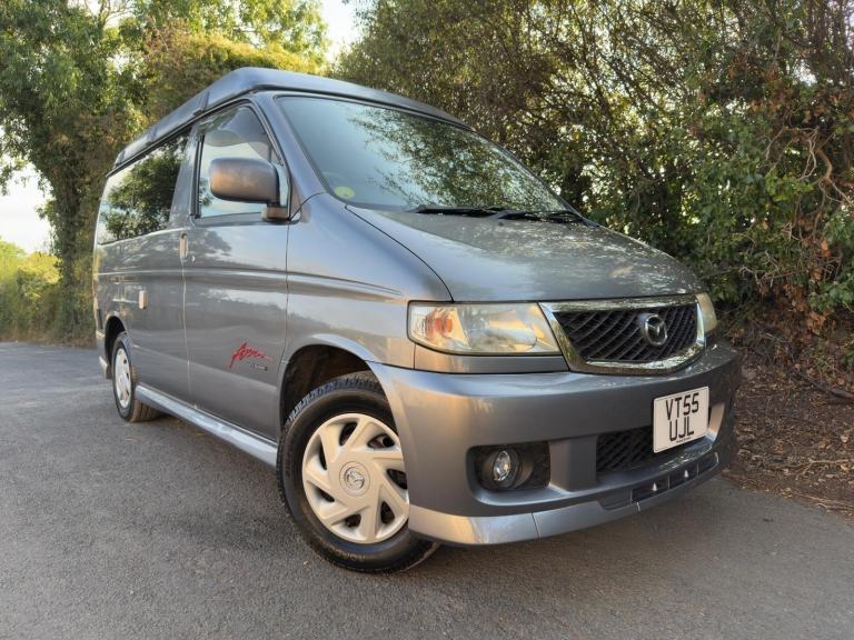 ULEZ & CAZ COMPLIANT 2006 MAZDA BONGO POP TOP 4 BERTH JAL SPACESHIP SIDE CONVERSION LOW MILES 69,990 miles FULL HIGH QUALITY JAL CAMPER CONVERSION INCLUDES: 2 COOKERS, SINK WITH RUNNING WATER, FRIDGE FRESH & WASTE WATER BOTTLES, LEISURE BATTERY, SPLIT CHARGER, MAINS HOOKUP, UK SOCKETS, STORAGE, Table, power windows, Power Assisted Steering, Dual Airbags ABS, Blinds, MUSHROOM ROOF, Seat goes flat to make into bed 2 adult can sleep, 2 sleep up, 2 Litre petrol engine automatic transmission benefits from over drive, 2 WHEEL DRIVE, CLEAN BONGO IN AND OUT,UNDERSEAL,SERVICE. 3 MONTHS ENGINE & GEARBOX WARRANTY FULL AFTER SALE SERVICES OPTIONAL EXTRAS AVAILABLE NATIONWIDE DELIVERY VIEWINGS BY APPOINTMENT ONLY