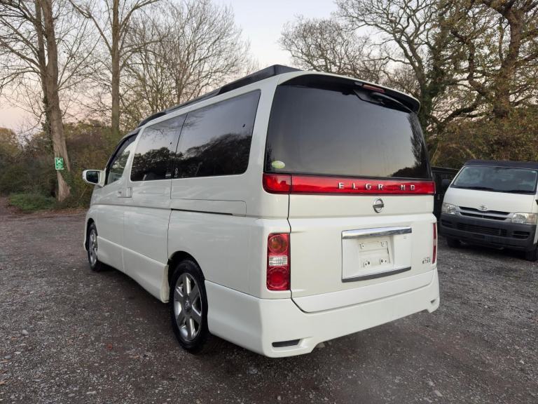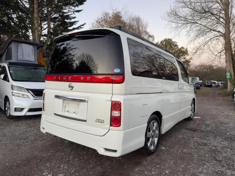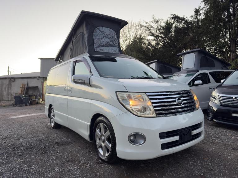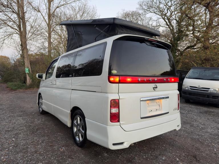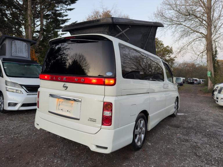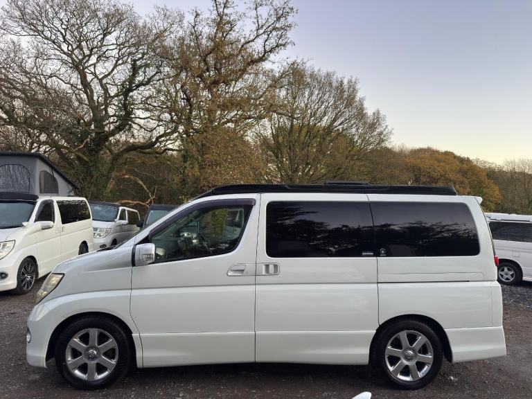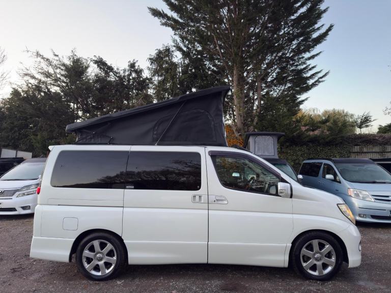 2006 Nissan Elgrand 4 BERTH POP TOP.BRAND NEW FULL HIGH QUALITY SLIMLINE SIDE CONVERSION FITTED BY [Website URL removed] WITH 12 MONTHS WARRANTY. """ LOW WARRANTED MILES ONLY 55,300 WITH PAPERWORK TO VERIFY MILEAGE """ AUTOMATIC, 2495 cc Petrol, POWER STEERING, ELECTRIC WINDOWS, , ELECTRIC MIRRORS, ABS, 5 SEATER WITH SEAT BELTS, 2 SEATER ON THE FRONT & 3 SEATER ON THE BACK(ROCK N ROLL BED) WITH SEAT belts AIR CONDITIONING AC, Snow Mode, Selectable 4wd,Electric Sliding Door, REVERSING CAMERA, SIDE VIEW CAMERA, BRAND NEW POP TOP ROOF, COOKER WITH 2 HOBS, SINK WITH RUNNING WATER, FRESH WATER TANK, WASTE WATER TANK, PROPER COMPRESSOR FRIDGE(NOT CHEAP FRIDGE), LEISURE BATTERY, MAINS HOOKUP, 240V SOCKETS, 2x12V USB PORTS, 46 Inch wide ROCK N ROLL BED GOES FLAT TO MAKE INTO LARGE DOUBLE BED 2 PEOPLE SLEEP, 2 CAN SLEEP UP IN THE ROOF, LONG MOT, UNDERSEAL, SERVICE, VALETED,FULL UK REGISTERED, GREAT CONDITION IN & OUT, DRIVES SPOT ON WITH 3 MONTHS ENGINE & GEARBOX WARRANTY. FULL AFTER SALE SERVICES Optional Extras,NATIONWIDE DELIVERY POSSIBLE.PLEASE NOTE FUNDS MUST BE CLEAR BEFORE DELIVERY. VIEWINGS BY APPOINTMENT ONLY... Following Optional Extras available at extra cost: SOLAR PANEL BIKE RACK ROOF BARS TOWBAR SWIVEL SEAT AWNING MICROWAVE LPG CONVERSION and much more…