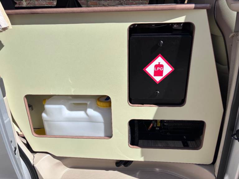 The water container and gas locker are easily accessed through the second sliding door behind the driver.