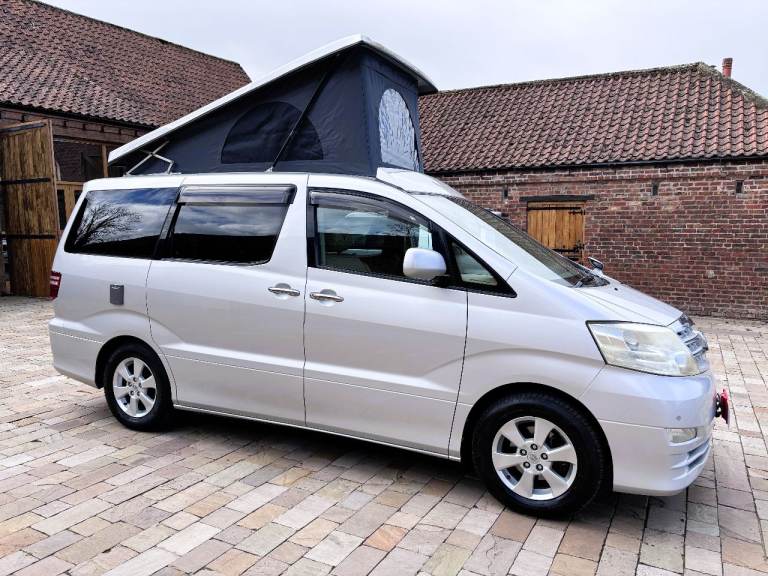 TOYOTA ALPHARD (2006) Milldown Campers Conversion in 2023, 2.4L Petrol AUTOMATIC. 4 Berth RHD PopTop Campervan. Fully automatic 84,000 miles with cruise control, power steering, cab aircon, full infotainment system including SatNav, Reversing camera and reversing sensors.