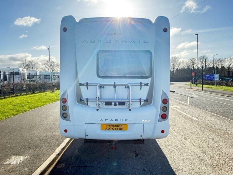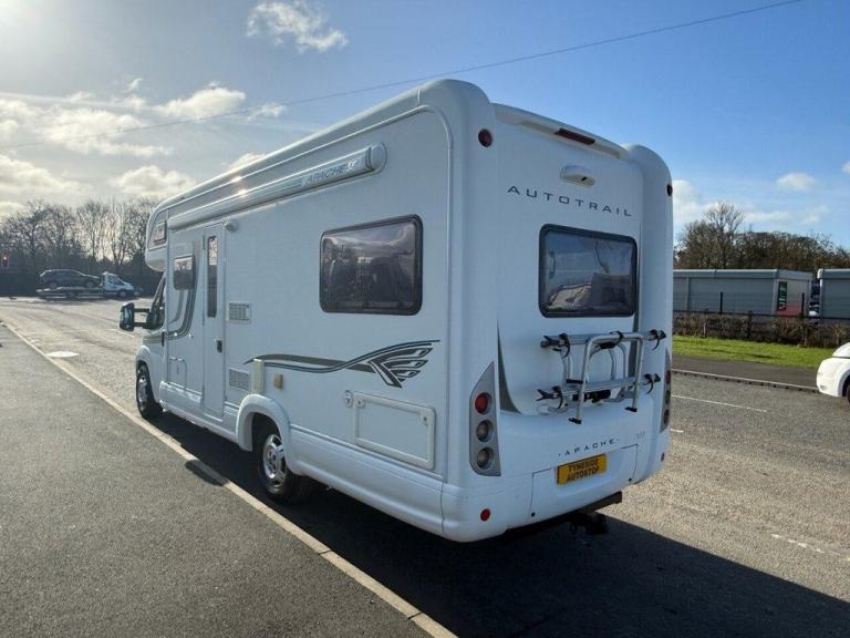2007 AUTO-TRAIL APACHE 700 6 BERTH MOTORHOME, FANTASTIC 6 BERTH MOTORHOME WITH GREAT LIVING SPACE AND STORAGE OPTIONS ALL ROUND AND 2 EXTRA TRAVEL SEATBELTS, TOWARDS THE REAR IS A LARGE U SHAPE LOUNGE THAT ALSO CONVERTS INTO A FANTASTIC SIZE DOUBLE BED, TOWARDS THE FRONT IS A GREAT SIZE OVER THE CAB DOUBLE BED, FRONT LARGE DINING AREA THAT ALSO MAKES A GREAT SIZE DOUBLE BED TO COMPLETE THE 6 BERTH LAYOUT, LADDER FOR EASY ACCESS TO THE OVER CAB BED, WASH ROOM WITH A TOILET, SINK, VANITY MIRROR, AND A WALK IN SHOWER CUBICLE, KITCHEN AERA WITH WORKTOP SPACE, UNDER BENCH FRIDGE WITH A ICE BOX, BUILT IN OVEN, GRILL, 3 GAS AND 1 ELECTRIC PLATE HOB, TRUMA HEATING, 3 PIN PLUGS, 12v INPUT FOR TV, TV INPUTS, LED LIGHTS, SKY LIGHTS, PRIVACEY BLINDS, GREAT STORAGE ALL ROUND INCLUDING WARDROBE SPACE, DRAWS, AND OVER HEAD CABINETS, AWNING AND BIKE RACK FITTED, TOUCH SCREEN MEDIA, AIR CON IN THE CAB, AWNING AND BIKE RACK FITTED, 4005KG