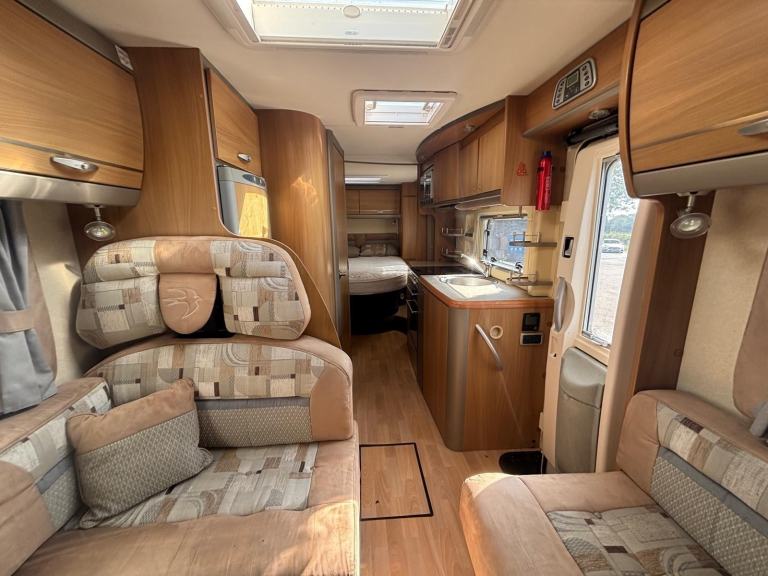 For sale is a 2007 Swift Kon-Tiki 669 motorhome with 60000 miles. This diesel vehicle, powered by a Fiat Ducato 160 MULTIJET engine, is perfect for family getaways with its spacious 6 berth capacity and comfortable interior. With a gross weight of 3850kg, it provides a smooth and stable driving experience. The vehicle has been well-maintained and is in excellent condition, with plenty of storage, modern amenities, and a fully-equipped kitchen. The Swift Kon-Tiki 669 offers a perfect combination of practicality and comfort for those seeking adventure on the open road.