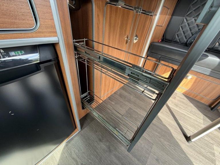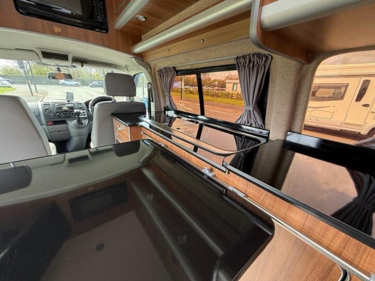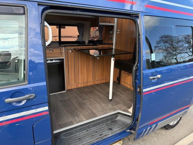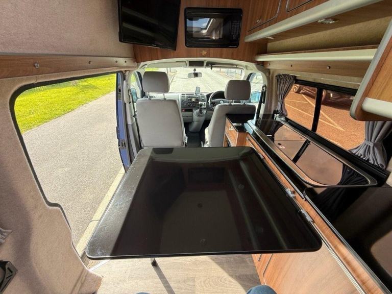 2007 (57) VOLKSWAGEN TRANSPORTER 2 BERTH CAMPERVAN, TOWARDS THE REAR IS A ROCK AND ROLL BED THAT ALSO HAS 2 EXTRA TRAVEL SEATBELTS 4 IN TOTAL, THE SEATING AREA CONVERTS INTO A LARGE DOUBLE BED, FANTASTIC STORAGE ALL ROUND INCLUDING WARDROBE SPACE, DRAW SPACE, CUPBOARDS, BOTTLE RACK, NIGHT HEATER, WORKTOP SPACE, 2 GAS BURNER HOB, SINK, GREAT SIZE UNDER BENCH FRIDGE, LED LIGHTS, LPG GAS, 3 PIN PLUGS, LESUIRE BATTERY, PRIVACEY CURTAINS,