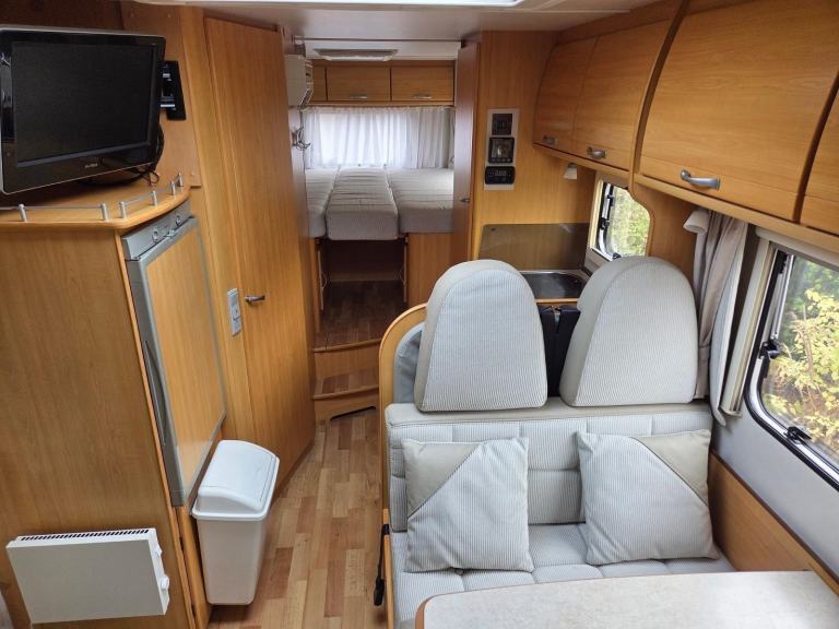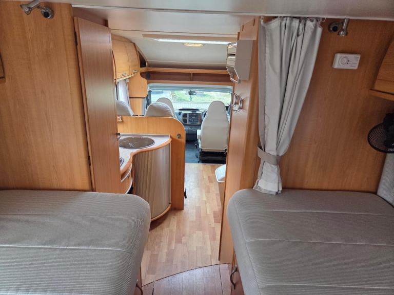 Motorhome Depot – Edinburgh, present a very nice 2007 LMC Liberty Start TI708 3 berth motorhome for sale. Based on the Ford Transit Chassis with its 2.4 diesel (Duratorq DI engine) and 6 speed auto gearbox this Motorhome is in lovely condition and has a year’s MOT valid until July 2026. The most recent habitation check was carried out on the 8th September. This motorhome is German built and has 57,397 miles on the clock. It has only had two owners from new. The Weight is 3850kg so a C1 Licence is required to drive. The length 7.3 metres and width 2.2 metres. The cab area has cab air conditioning, radio/cd player, central locking, electric mirrors and windows and a reversing camera. The dining area has 2 more travelling seat belts and the captain's chairs swivel round to join the lounge. Your bathroom has a shower, wash hand basin and a cassette toilet. Kitchen area is spacious and is equipped with a 3 way fridge freezer, 3 burner gas hob, oven, grill and sink. The heating system is a Truma Combi boiler that provides blown-air heating and hot water using gas. It can operate on gas, electricity, or a combination of both, and the system has a timer and a frost protection mode. The bedroom can be left as 2 fixed single beds or made up into a large double. The large garage has excellent storage for all your travel items. There is plenty of storage throughout the habitation area. Additional items include a Fiamma F45 awning, solar panel and rear air suspension. This is a fine example of a low mileage, well laid out 3 berth motorhome and is sure to appeal to couples or solo adventurers looking for lots of flexibility and space. For more information or to schedule a viewing, please send an e-mail to [Email address removed. Click Email button to contact us.] or call/message me on [Phone number removed]to request access to a full suite of photographs. The motorhome is located in East Linton, East Lothian and viewings are strictly by appointment.