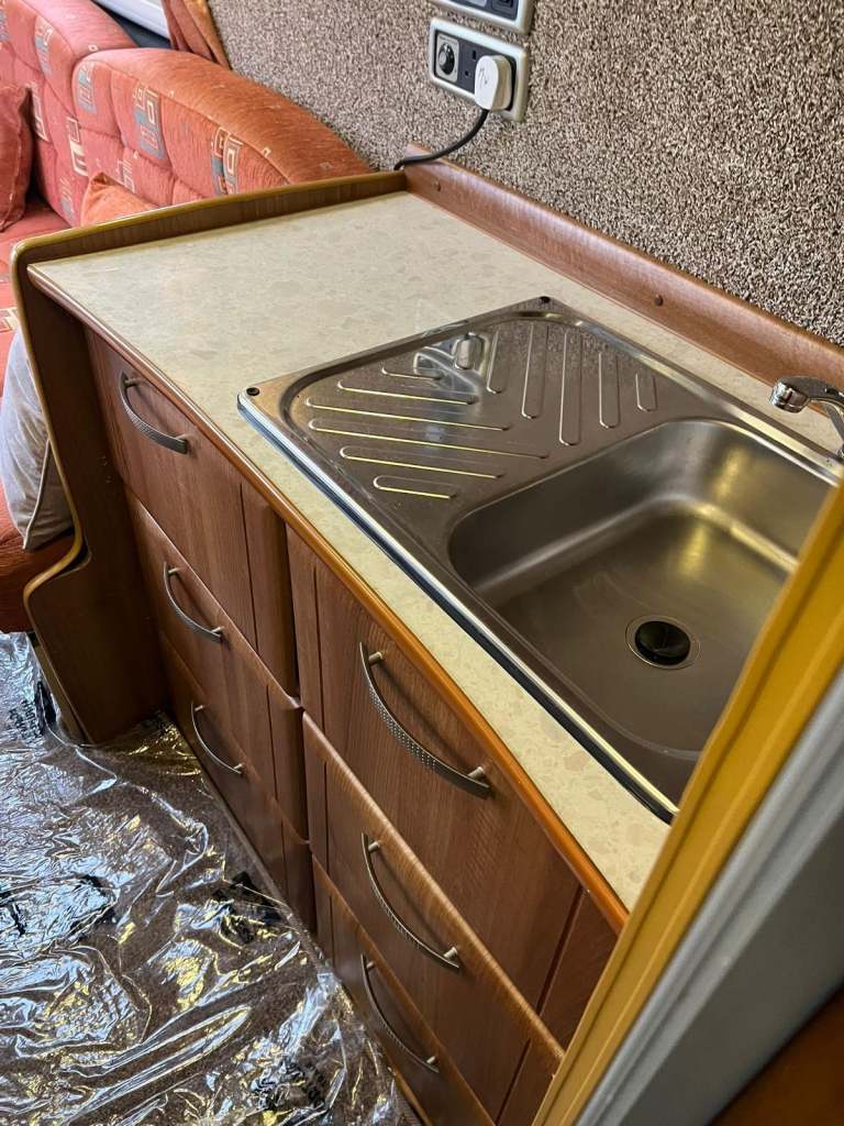 Upon entrance you are met with the clean and bright lounge that features a long side sofa that easily converts to a large double bed at night time, or you can used as 2 comfortable single beds if preferred. The two front Captain’s chairs swivel to become part of the lounge and dining area. The forward-facing single seat also has a ap seatbelt, so you can take friends with you. The Kitchen is superb with plenty of worktop space, as well as a oven, grill and 4 burner Hob, plus fridge with a freezer compartment and sink with a drainer. The shower room has a toilet, fold down sink with tap and a Shower. Other features include - Air con, 6 metre in length, awning, night heater, full service history and much more! Excellent Condition!