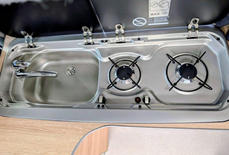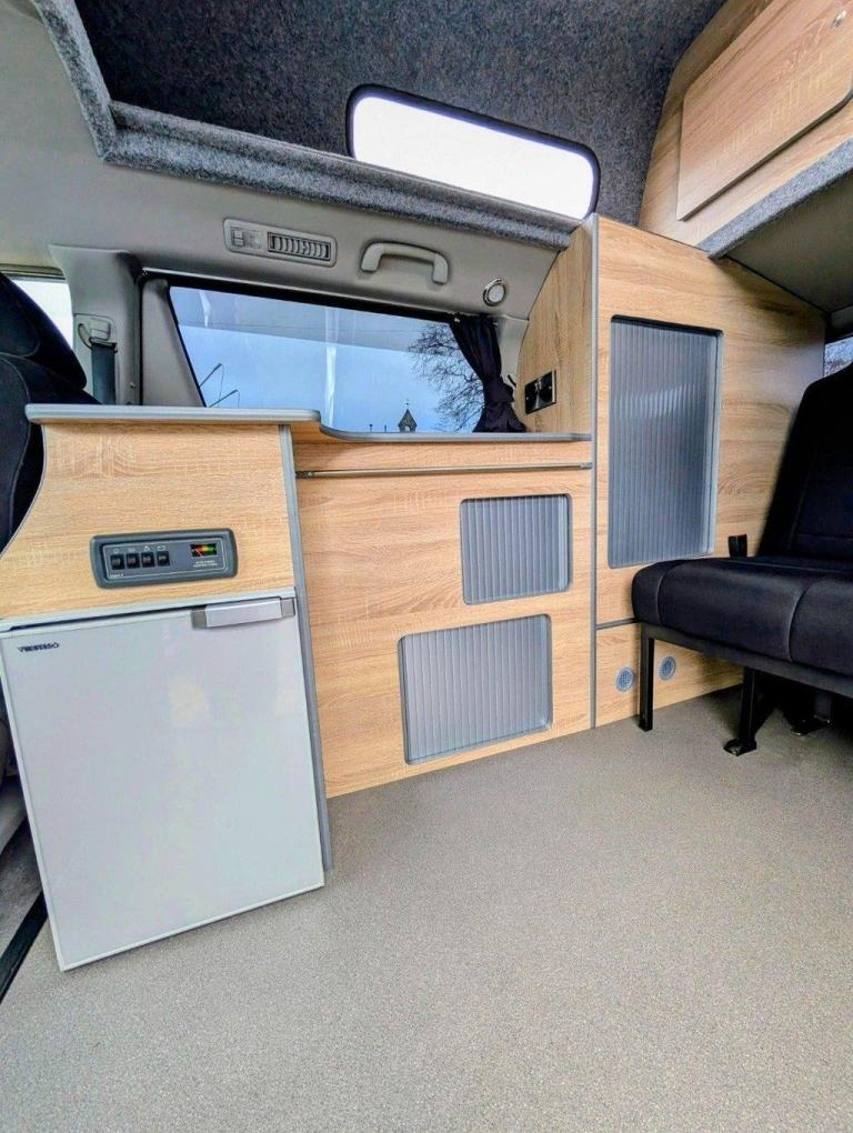 , Rear Tailgate Door, Twin Sliding Doors, Tinted windows, Alloy Wheels, Air Conditioning, Silver Screens, Pop Up Table, Curtains, Freshwater System, Gas Box, 240v Mains Electric Hook Up, 12v Leisure Battery System, LED Lighting, Finished Wood Surfaces, Toilet Facilities: Port Potti Storage Cupboard, Built in Cupboards and clever storage solutions, Kitchen area with fridge, a sink and 2 burner gas hob, Seats 4, Sleeps 4, High Top Roof