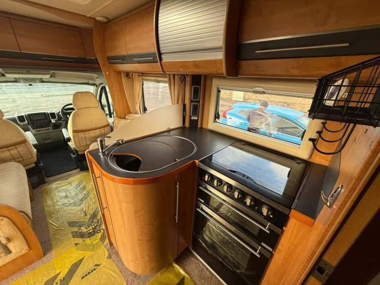 This van comes with all the standard features ie, Cab air con, Blow Air heating, Hot water, Separate shower and toilet, Fixed Single beds, Blinds/Flyscreens/curtains all round, Fresh/Waste water tanks, Cassette Toilet, Electric Step, Large Panoramic Sun Roof, 3 way fridge/freezer, Gas hob and oven, the list goes on.