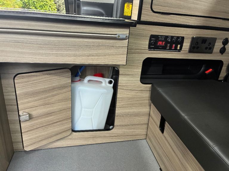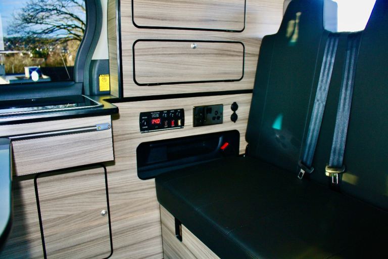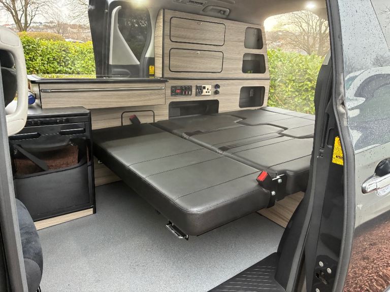 CONVERSION CONSISTS OF 'BORDOLINO/GREY' UNITS INC.50 LITRE FRIDGE FREEZER, EASY GLIDE 48 INCH EXTRA WIDE ROCK N ROLL BED WITH 3 SEAT BELTS, PASSENGER SWIVEL SEAT, TWO BURNER GAS COOKER, SINK WITH PUMPED WATER, GAS LOCKER FOR GAZ 907 BOTTLE, LED LIGHTING, EASY ACCESS STORAGE CUPBOARDS WITH PUSH BUTTON CLOSERS.
