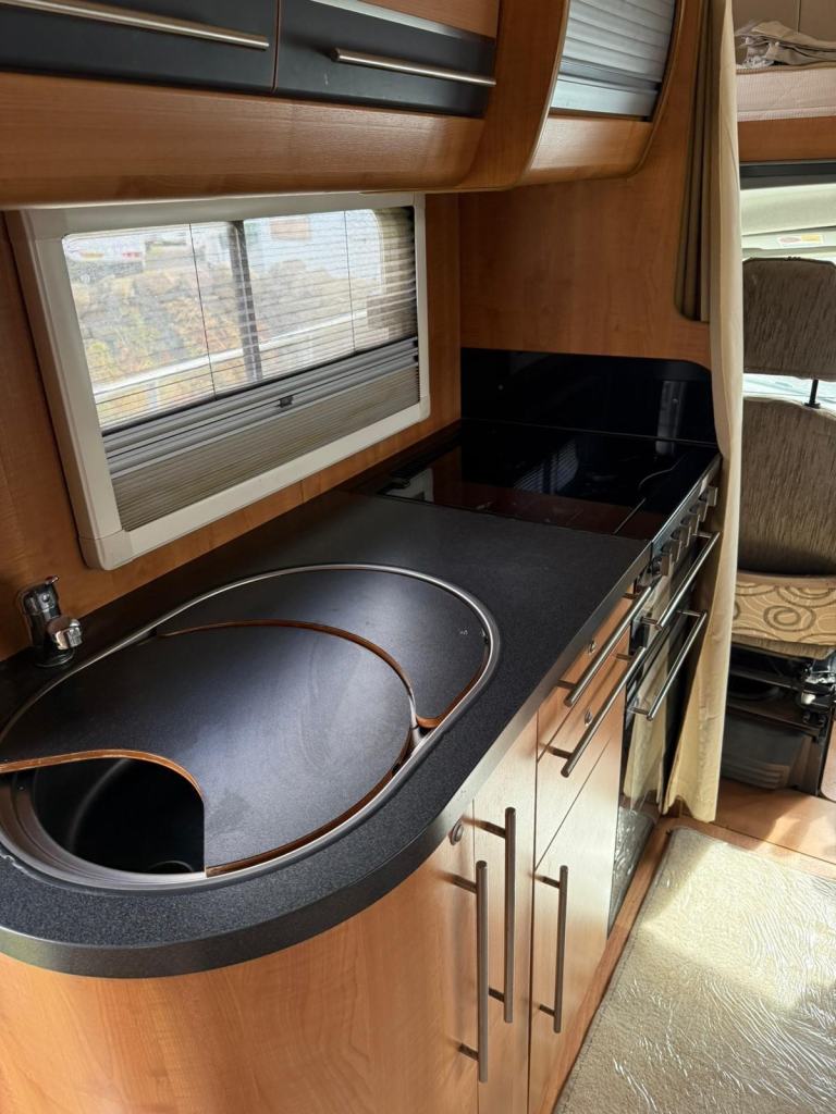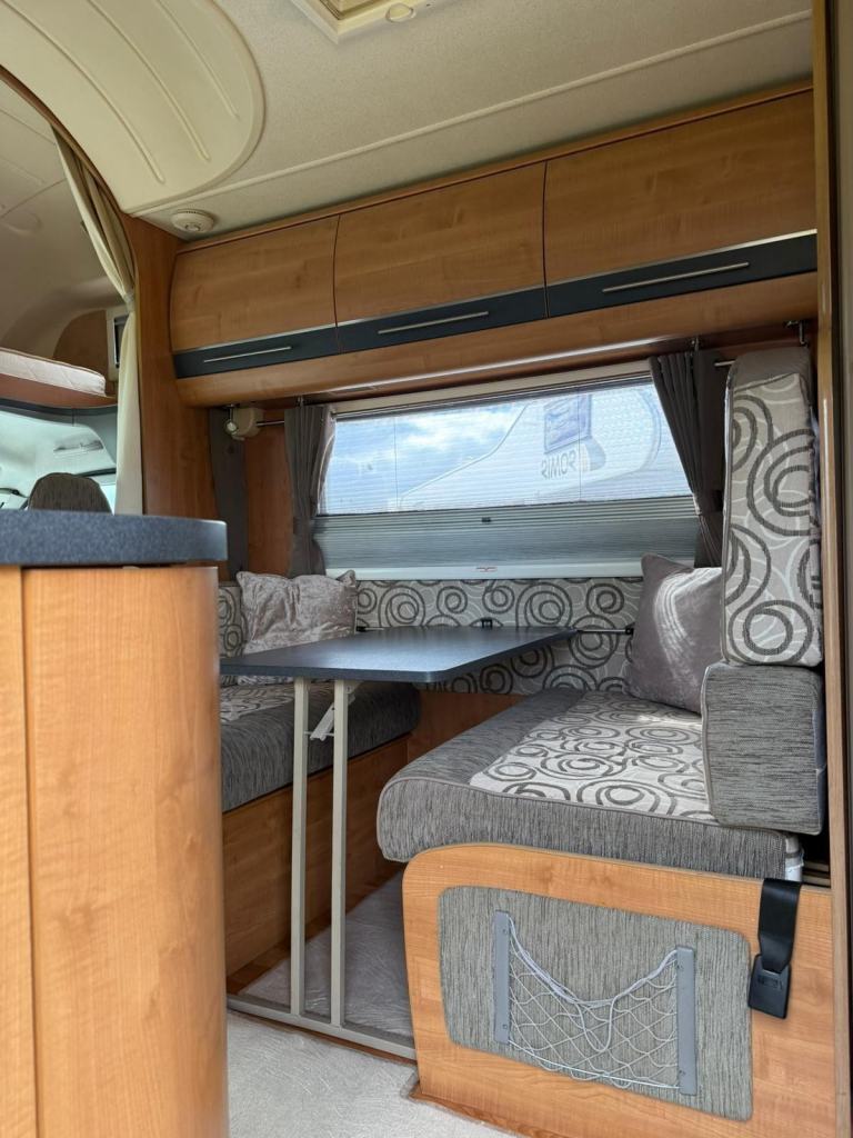 This motorhome has been extremely well looked after and is ready for its next adventure. Complete with large amounts of storage, this 6 Berth is ideal for families or couples who just need that extra bit of space for long haul trips. As you enter the central dinette area, this can be opened up by the captains swivel seats in the cab area (this area converts at night into a comfortable bed). Above the cab you have a spacious over cab bed, large enough for two adults. The kitchen area comes complete with plenty of worktop space, oven/grill, 3 gas hobs, 1 electric hob, microwave and a sink and fridge/freezer. The bathroom hosts a sink, toilet and full size separate shower area. Finally the classic rear u-shaped lounge has plenty of space for the whole family, with overhead cabinet space and ambient lighting - which in turn at night time easily converts into another spacious sleeping area. Other features include - TV, central heating, awning, garage, step and much more!
