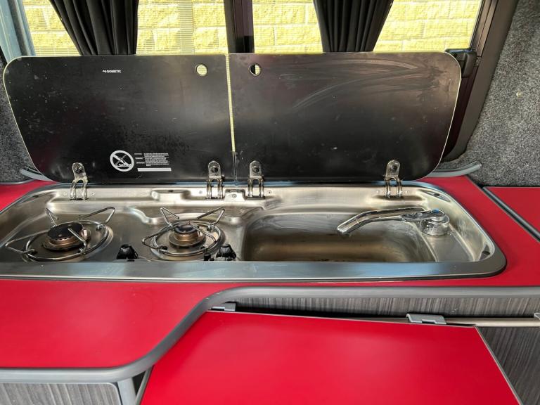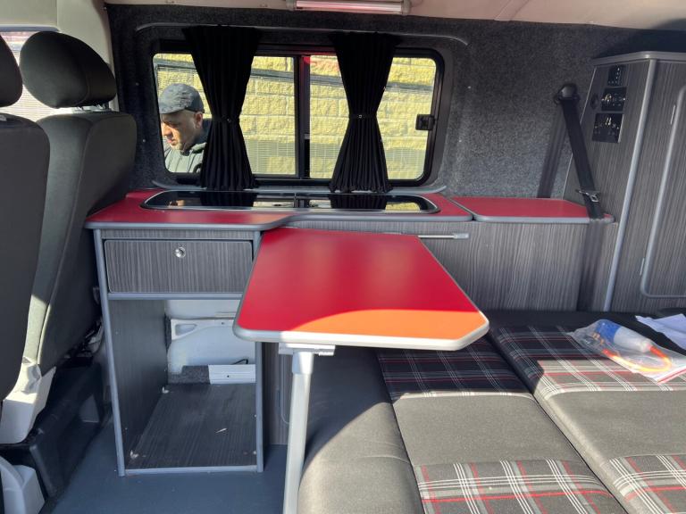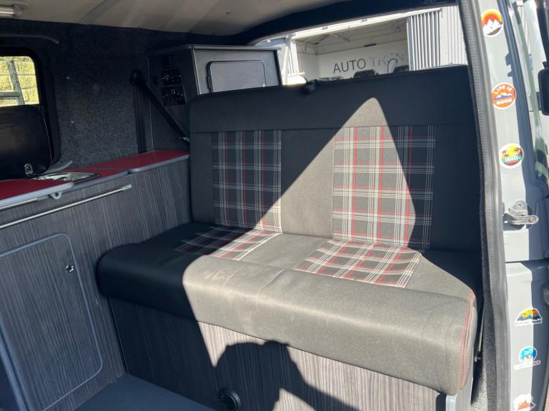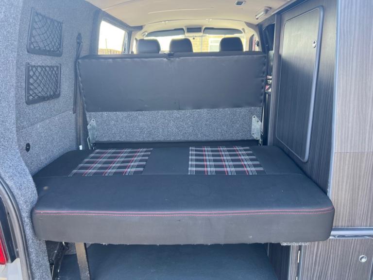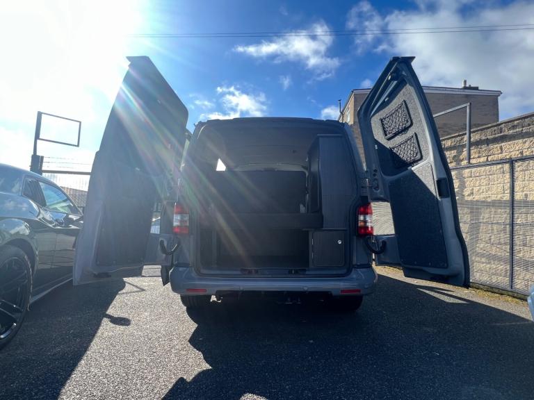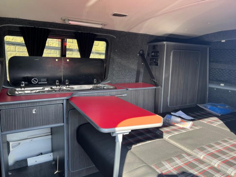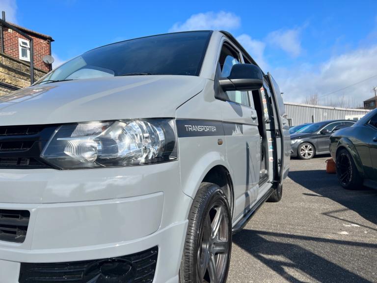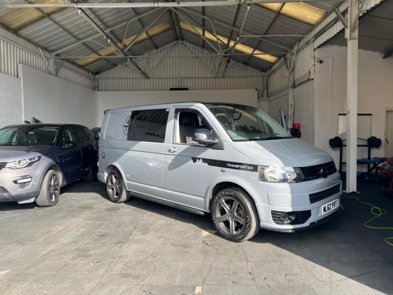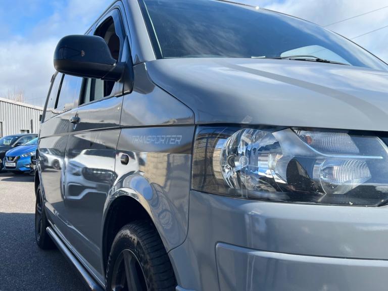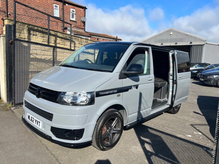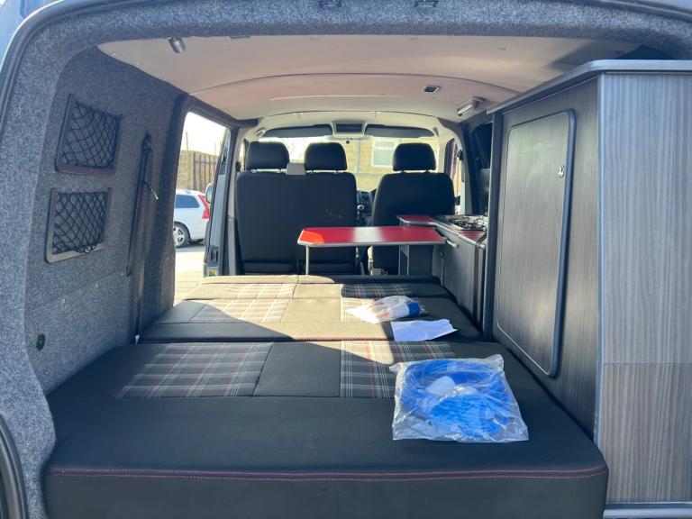 Volkswagen transporter t28 bluemotion full camper van conversion in very good condition fully transferred into a mobile home with all electrics sockets gas has had thousands spent on it fully resprayed has a double cooker sink fold up table plenty of shelves and storage double seats which fold into a double bed all electrics and lighting in the rear flooring done to a high standard in nardo grey full mot just been serviced had cam belt done at 142k all electrics work has side windows transferable double bed ideal motor home at a reasonable price contact us for more information nationwide delivery available