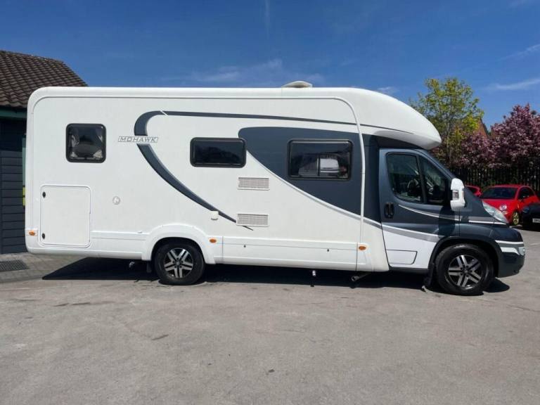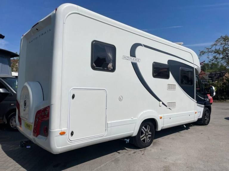 3 Owners - Service History - Berth 4 - Built on the Fiat Ducato chassis with 2298cc 130 Bhp Diesel Engine, Manual 6 Speed Gearbox. The AutoTrail Mohawk is part of the flagship "Frontier" range and is a 4 Berth, Lowline model with parallel front lounge and rear parallel transverse bed over a garage. The front parallel lounge offers a long bench seats that can pull together to make up a double bed. The kitchen benefits from a Full Cooker with dual fuel hob, multi combi fridge with a removable freezer box, Microwave Oven, Sink with mixer taps lots of storage space for your essentials with soft close cupboard drawers. In front of the bed on the nearside is the washroom featuring a Toilet with electric flush and Sink with domestic style taps whilst on the offside opposite is a separate shower cubicle. Features include in the Cabin is Air Conditioning, Cruise Control, Satellite Navigation, Fixed Bed over Garage, External BBQ Point, External Hot/Cold Shower, Cruise Control, Reversing Camera and Alloy Wheels. End layout End bedroom - Bedroom layout Transverse bed GVWMTPLM: 4,250kg Gearbox Manual - Engine size power 2.3L Seats 2 Dimensions L:7,500mm x W:2,300mm Delivery UK wide Available, Nil Deposit Finance, , HPi Report, Extended Warranty Available .15in Steel Wheels, Anti-Lock Brakes, Capucine, Dead Locks, Digital Tachograph, Drivers Airbag, Smart 2, Drivers Seats Armrest, Electric Heated Mirrors, Electrical Interface Supply Socket, Head Restraints - Three Front, Immobiliser, Lumbar Support for Drivers Seat, Normal Size Spare Wheel, Radio/CD with MP3 Player, Servotronic (PAS with Variable Servo), Single Passenger Seat With Armrest, Speakers, Special Order Electrics - Loom Extension, Special Wheel Trims, Speed Limiter 56MPH/90KPH, Third Brake Light, Twin Leaf Suspension For Heavy Conversions, Upholstery - Cloth