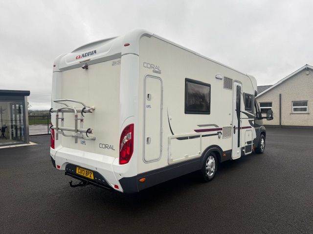HERE WE HAVE FOR SALE A VERY NICE 2013 ADRIA CORAL S680 ST 4 BERTH FIXED BED MOTORHOME WITH ONLY 56K MILES, FEATURES OF THIS MOTORHOME INCLUDE: BIKE RACK, REVERSING CAMERA, SWIVEL SEATS, FOUR BELTED SEATS, AERIAL, REAR FIXED BED, AND FULL SIZE FRIDGE FREEZER.