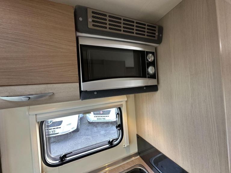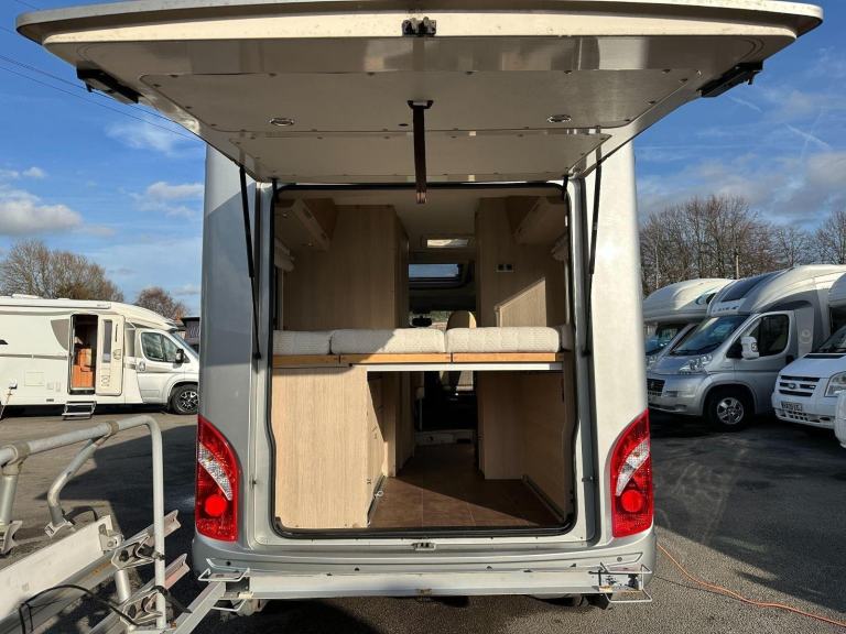 Pull-out Bed - End Bed | Bathroom with shower and Thetford toilet | Truma Heating |Microwave, Two ring Dometic Hob, Dometic fridge | Awning & Skylights| Reverse Camera | Solar Panel | Bike Rack |Cruise Control | Part Leather Trim | Radio/CD Player | Large Rear Door.