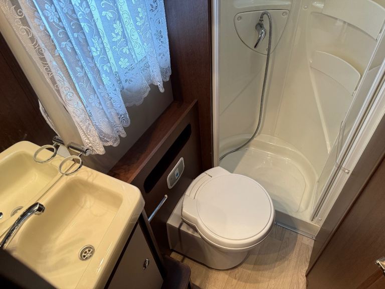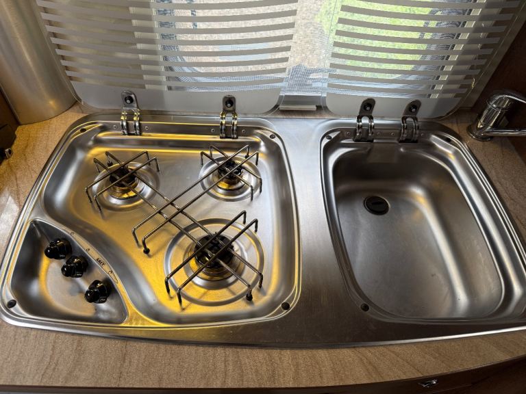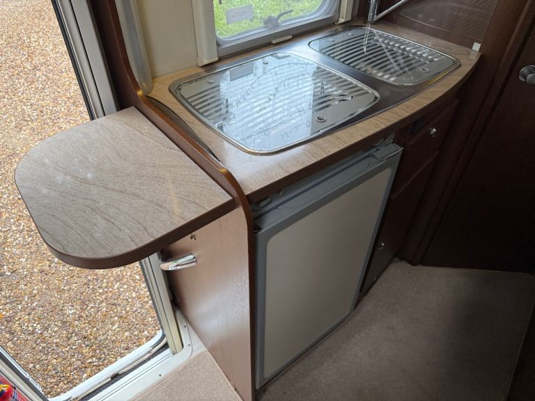 High spec to include: Gaslow refillable gas system, Solar panel system, rear view camera, Fiamma bike rack, Fiamma awning, Heki rooflight, gas heating and hot water, 2 x rotating front seats, CD player, 3 way fridge, 3 ring gas hob, gas grill, removable table.