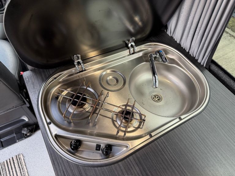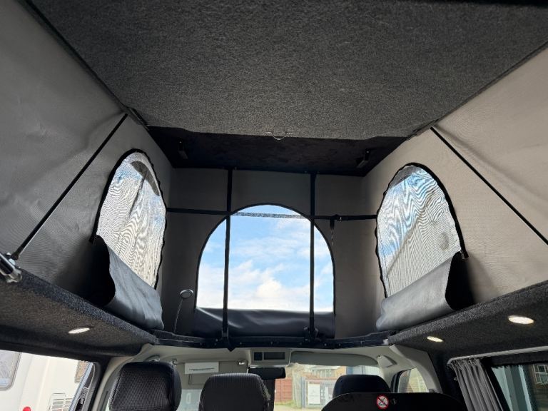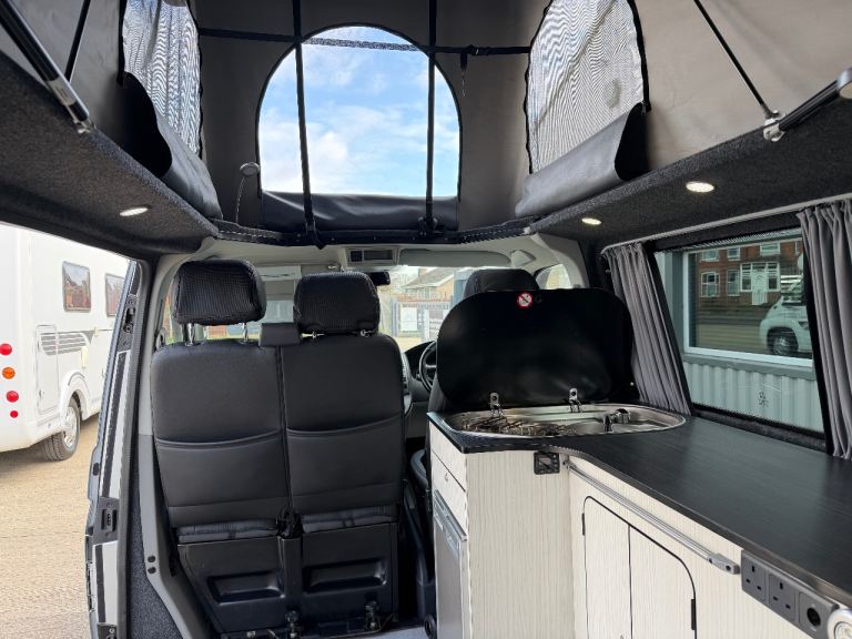 Great spec to include: Diesel heating system, solar panel system, 12v leisure battery system, gas hob, 12v compressor fridge, sink with cold water tap, rotating front double seat, Air Con (front cab), privacy glass to rear, upgraded alloy wheels, remote central locking, steel side bars, rear parking sensors.