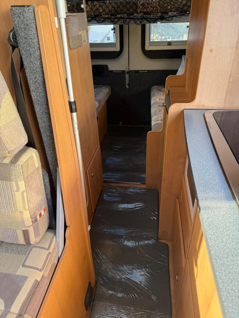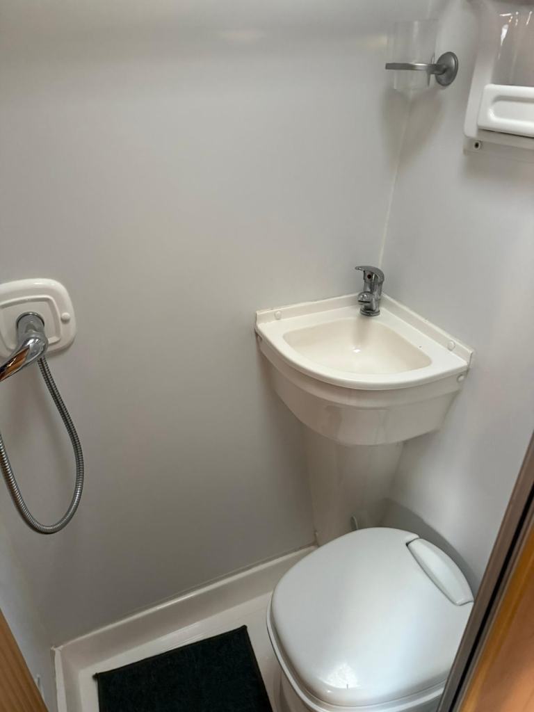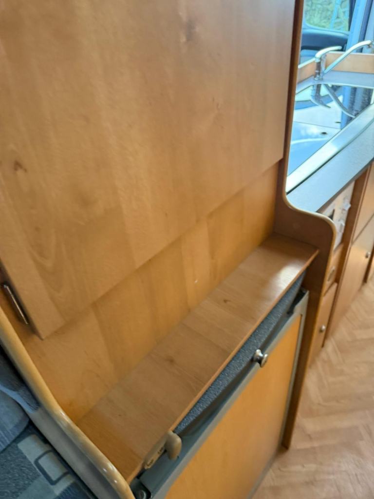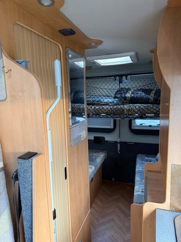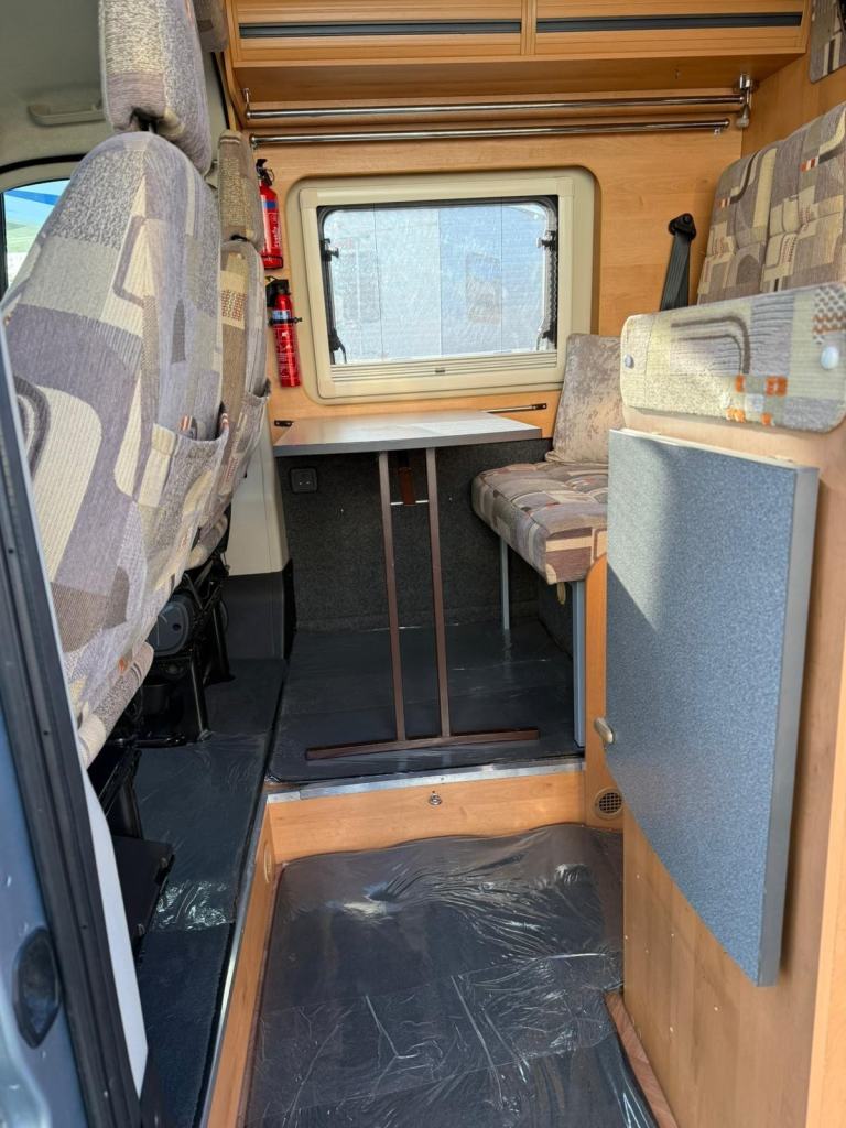 The 4 berth layout has 4 belted travelling seats. Starting In the middle of the campervan is the kitchen, with a fridge/freezer, hob, oven/grill and sink. Opposite is the washroom, which has a toilet, shower and basin. Up front the forward-facing travel seats and two Captain’s seats swivel to offer an open plan lounge. To the rear is where you will find opposing bench seats that can be made into a comfortable double with an additional dropdown bed above - This excellent camper comes with full spec and quality features. Other features include - Air con, NEW on board gas tanks underneath, central heating and MUCH more!