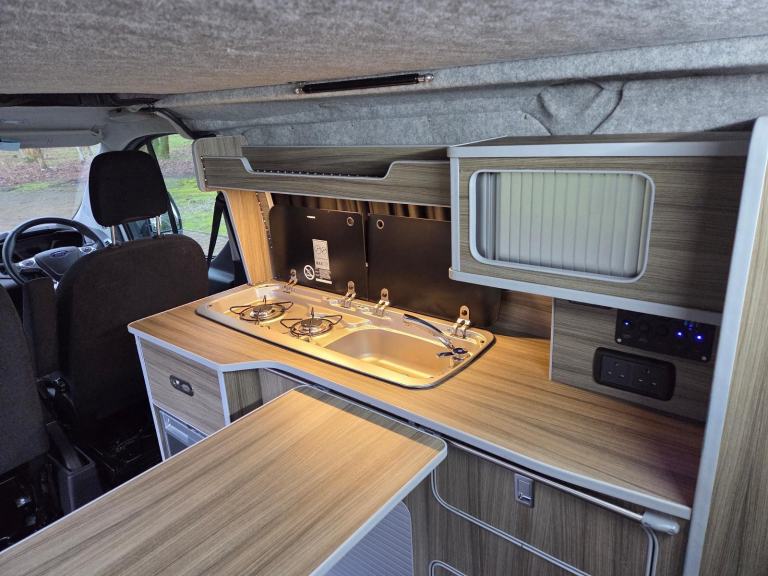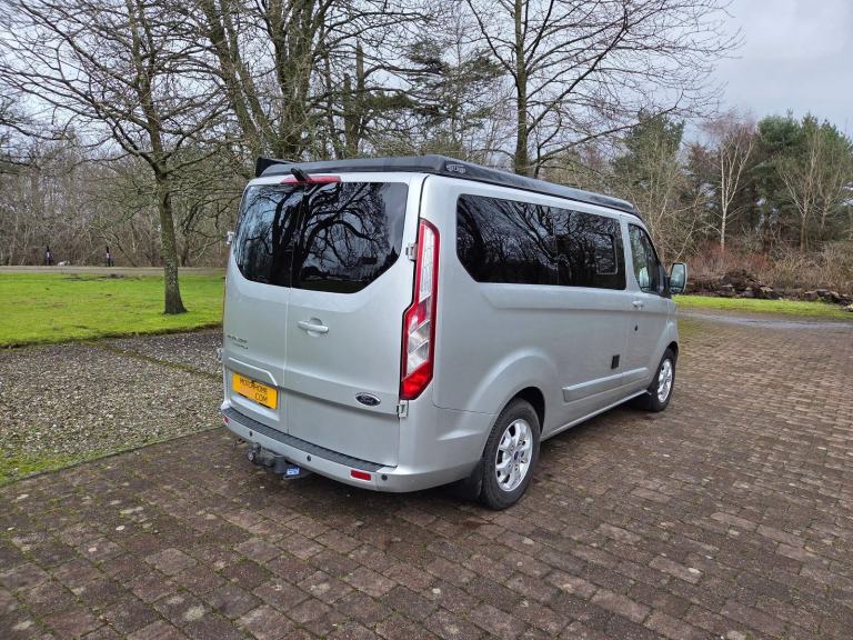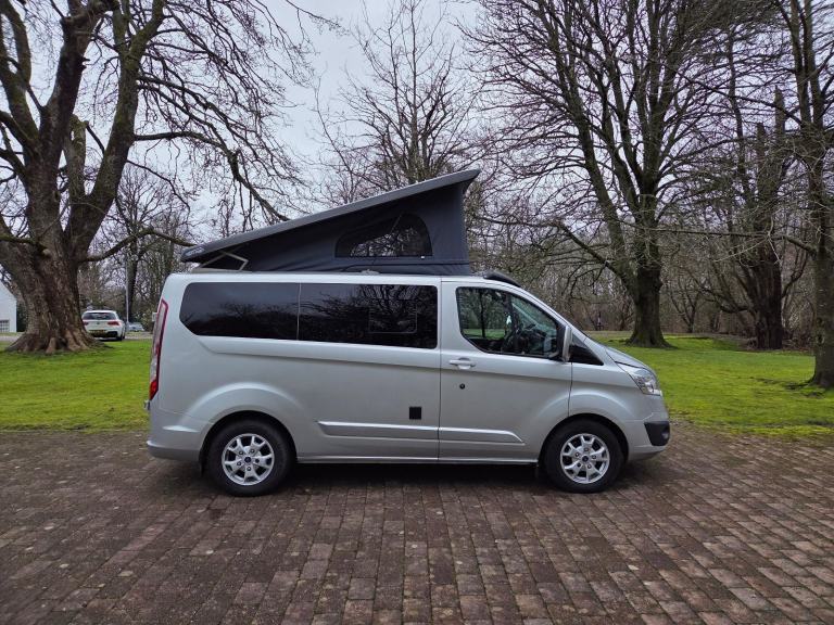Motorhome Depot - Edinburgh, are delighted to present this fantastic three owner, 2014 (64) Ford Transit Custom 270 LTD E-TECH Campervan for sale in Broxburn, West Lothian. This campervan, comes with a pop-top roof and is the perfect vehicle for your next adventure. With 5 seat belts and accommodation for up to 4 people, it provides a comfortable and cosy space to relax and unwind after a day of exploring. It also doubles up as a very useful every day vehicle. It’s powered by the 123 bhp 2 litre TDI engine and 6 speed manual gearbox. It has only 62,893 miles on the clock, and with its front wheel drive, provides a smooth driving experience. This campervan comes with a full service history and current MOT valid through to March 2026. A full years MOT will be put on the vehicle before the sale. The camper comes in stylish silver bodywork and alloy wheels which set it off perfectly.** The owner will consider a 4 x4 SUV as a part exchange up to the value of £15,000 ** Key Features: Body: Short Wheel Base GVW: 2700kg L: 4.97m W: 2.3m Pop Top Roof: Vinyl windows and roll down blinds. Easy lift upper double bed platform in roof space, sleeps two. Fit Out: Tasteful conversion. Flooring, fixtures, fittings and fabrics all provide a high quality feel. Cab: Remote Central Locking, Electric Windows, Electric Mirrors, Power Steering, Heated Seats, Air Conditioning, Cruise Control, Integrated CD, Radio and Phone Prep, Apple Car Play, Android Auto, Bluetooth. Under seat storage, privacy window blinds. Living: Forward facing double seats with belts. Convert to a full size ‘Rock & Roll’ double bed with under storage. Foldable dining/work table, ample storage space, LED lighting, additional USB ports, 240v sockets and shelving. Kitchen: Integrated two burner gas hob with sink. Dometic 12v fridge/freezer. Power: 240V hook up point, 100 watt solar panel, onboard C-TEK charging system with split charger, lithium leisure battery, control panel, 13A sockets, USB ports, 12v socket and LED lighting. Comfort: Thermostatically controlled Diesel blown air heating system. External: The van also benefits from a Dometic roll out awning and towbar with electrics for a bike rack. Included in the sale: Thermal window blinds, 240v hook up cable & levelling ramps. Viewings: Strictly by appointment. For further details and an additional 100 photographs, please contact the Seller. Finance is available for this vehicle. We offer a pick up and return service from local airport's, bus or train stations. Trade ins may be considered. All money transactions are done through the HSBC intermediary holding bank account for security and peace of mind.