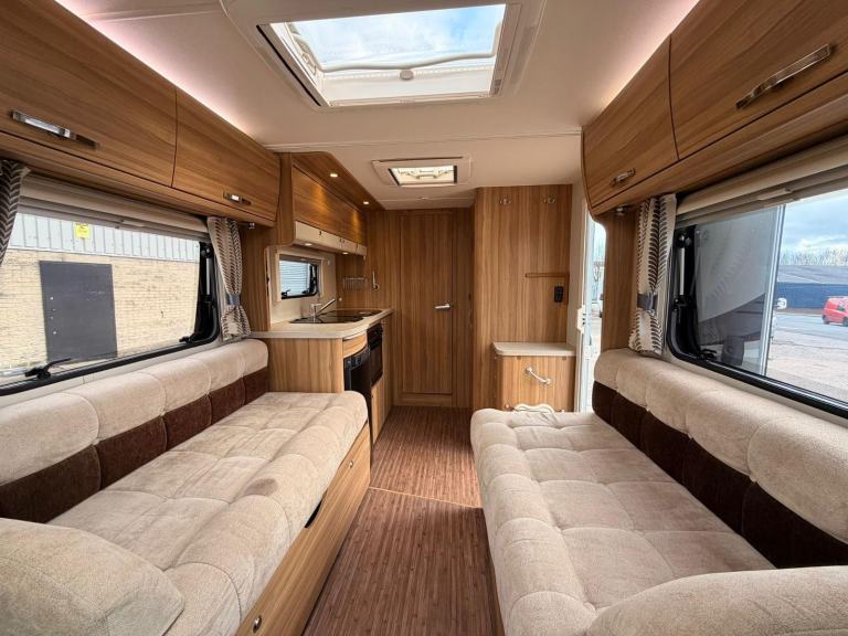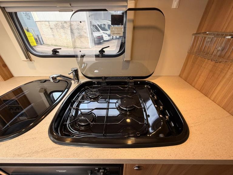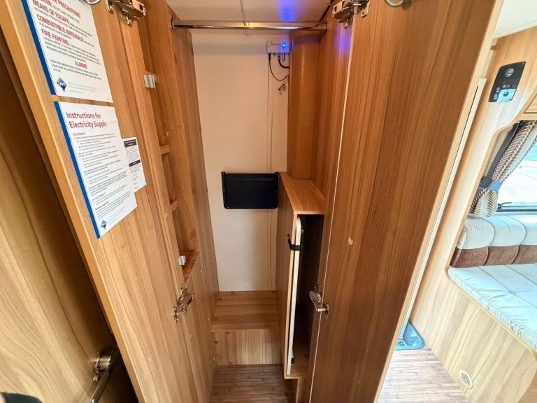 The full-width rear washroom comes with cassette toilet, vanity sink unit and combined shower offering plenty of room to get changed.Externally there is a solar panel, wind-out awning, 2-cycle rack, heated water tanks, one gas bottle and electric hook-up cable.