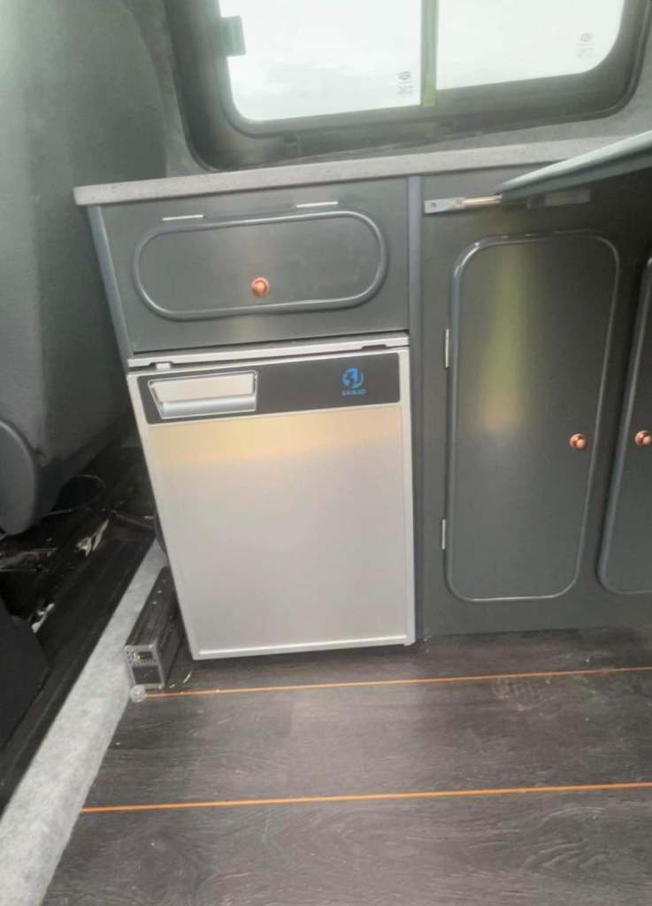 The van has a split charging system, powered by the solar panel on the roof.