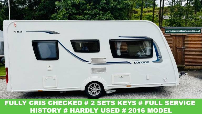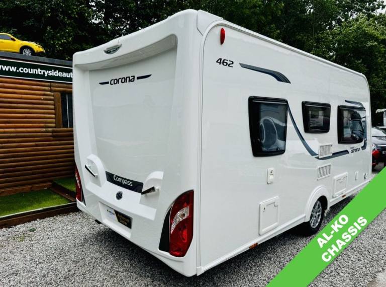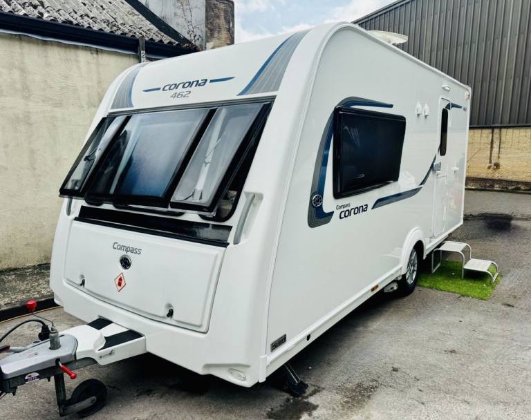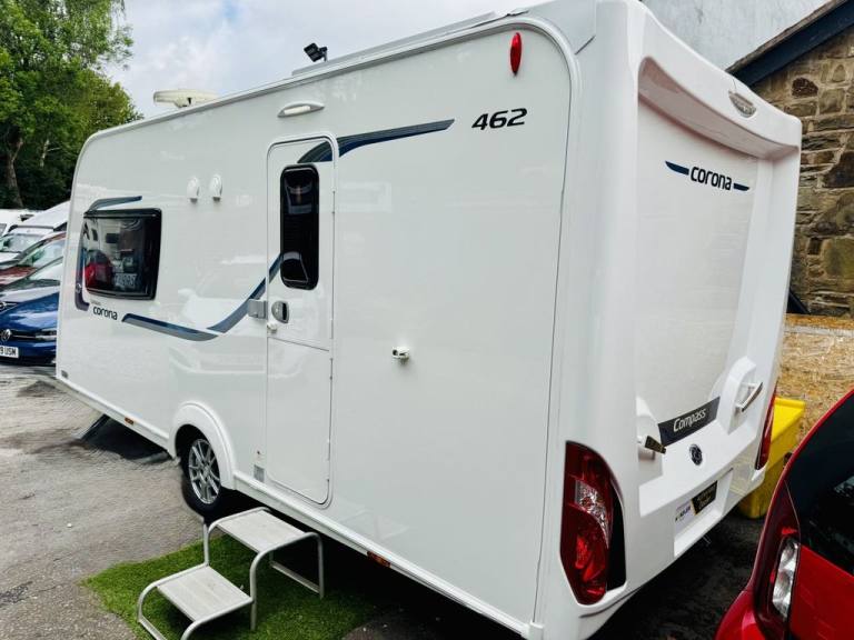 Here we have an absolutely stunning example of a great specification Compass Corona 462 Caravan. (2016 Model) Absolutely Immaculate condition throughout. Solar panel on roof, Hankook Plus Leisure battery. AL-KO ATC Trailer control system, Moving the van is a breeze with the remote control Powerwheel Motor mover, Lightweight with AL-KO Chassis. Pioneer entertainment system with integral speakers, Alde 3020 24 hr Multi programmable central Heating system. Front lounge area that makes into spacious double bed. Central spacious kitchen area with Thetford Aspire 2 cooker with 3 Burner and hot plate, Grill and oven. Also has a Microwave oven . Stargazer rooflight ceiling. Teleplus TV Aeriel System. Rear bathroom with spacious Shower, Swivel Thetford C260 Cassete toilet, also with huge rear wardrobe. This Caravan has had one former keeper and truely is Immaculate with a full documented service history 2 sets of keys and comes complete with Power lead , water pump and a superior quality Remote Motor mover. Will also come with a 12 month specialist MB AND G Caravan warranty. All our vehicles over £3000 come with our 5 Star package! * Full service with new oil, oil filter, air filter and pollen filter, and brakes, lights and levels checked. * Minimum of 9 Months MOT or a will have a Brand new one! * 6 Month comprehensive parts and labour warranty F.O.C.! * Full valet prior to collection! * HPI Clear with PDF Report (unless clearly stated otherwise) Extended warranties available at competitive rates. Give us a call to make your next purchase a special purchase. FCA Regulated, Finance available Subject to status! 5 Day Driveaway insurance available at small cost (circa £30) to get you on the road sooner than you think. Secure any car with a small deposit. Airport/Train station collection service All our Part X to clear cars (under £3000) come with our Budget 4 star package! * Minimum of 5 Months MOT or a will have a Brand new one! * Lights and levels checked! * HPI Clear with PDF Report (unless stated) * 3 months Major mechanical parts warranty.1 PREV OWNER FULL SERVICE HISTORY , SOLAR HANKOOK LEISURE BATTERY AL=KO, UNMARKED INTERIOR AS NEW , POWERWHEEL REMOTE MOTOR MOVER, 12M MB AND G WARRANTY FOC!,