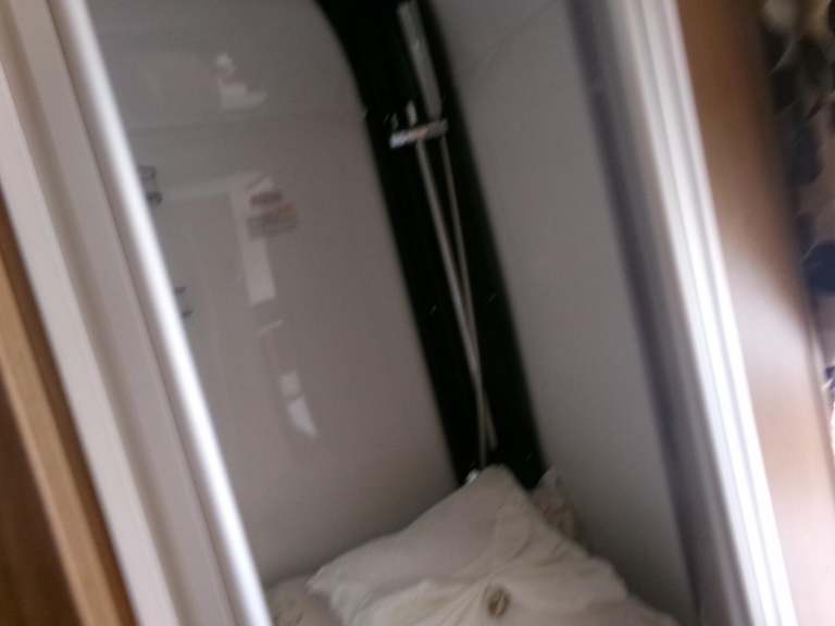 This Tag Axle Auto Trail Chieftain consists of a fixed rear transverse bed over the garage with lots of headroom not cramped like some vans , bathroom with wash basin, toilet and cupboard with a lovely separate roomy shower opposite with folding glass doors.