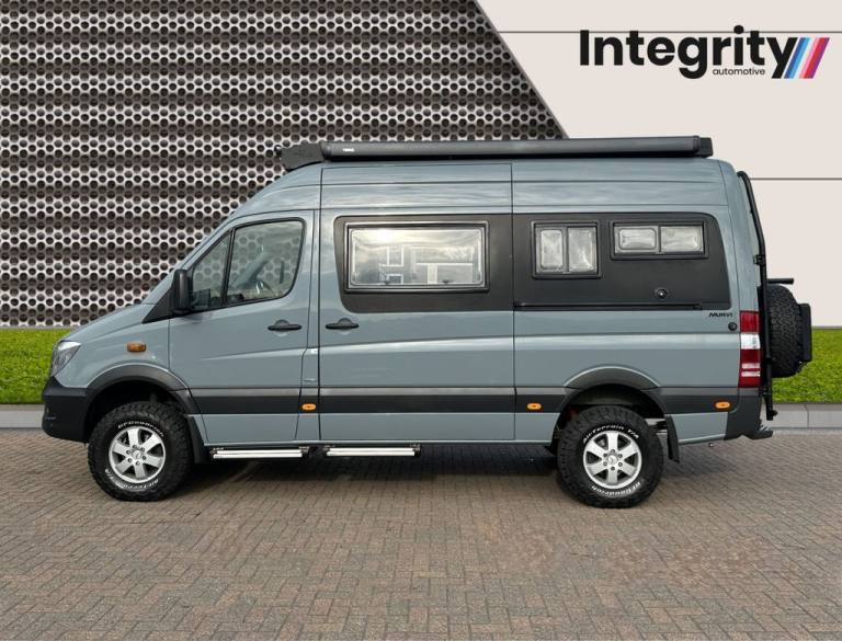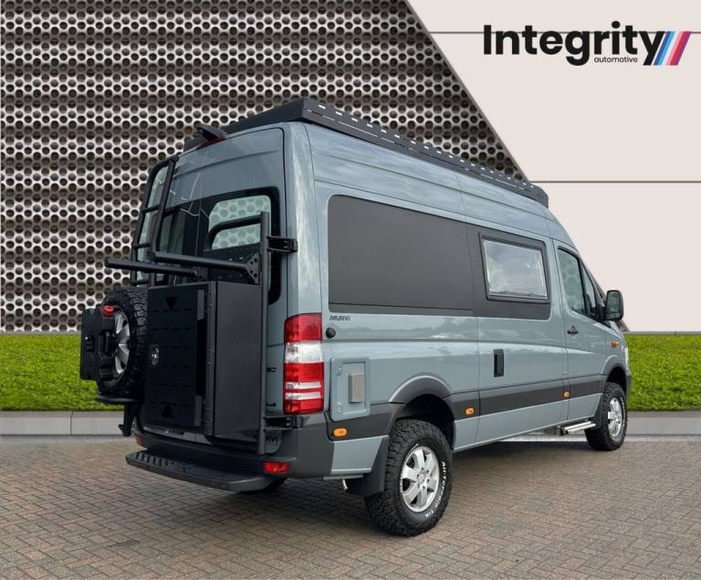 Say hello to our amazing camper built by Murvi where quality comes as standard! The attention to detail means the design is ergonomically and technically superb, visually outstanding and carefully put together. Since 1980 Murvi has won over 40 major awards, proving its reputation as one of the foremost independent British Motorhome manufacturers. The large L-Shaped open lounge give a fabulous unobstructed views through the sliding door and yet retains an amazing amount of storeage space. The kitchen and washroom are positioned at the rear and more worktop space than most larger coach built M/Homes. The high back settee is super comfortable and allows you to lounge like no other van! The seat converts easily into a full size double bed that still allows easy access to the kitchen and washroom. Probably the best van conversion lounge in Europe… superb style and space! Options from new include: V6 190BHP Bluetec engine - £5295 Automatic Trans - £1035 Selectable 4x4 - £5545 Air-conditioning - £931 Thatcham Alarm - £406 Comfort Seats Driver/Pass - £198 Heated Seats - £280 Parktronic with elec mirrors - £695 Alloy wheels - £603 Front Fog Lights - £99 Adjustable Steering Wheels - £83 Mud flaps - £94 Rear step - £109 Elec side door - £640 Rain/Dusk sensors - £156 Audio 15 system - £130 Rev Cam - £420 Sat Nav - £520 Collision Prevention pack - £1238 Dashboard Storage box - £47 Scorpion Cat 6 Tracker - £300 100W Solar panel - £550 Leather front seats - £500 Leather rear seats - £1500 Electric steps x3 - £900 230v Microwave/grill - £220 2 Burner ceramic hob, diesel fuelled - £800 Water purification - £250 SOG system for toilet - £120 Additional options: Koni adjustable dampers Upgraded leaf springs Multiple Lazer lights Mule roof rack with integrated lightbar Mule rear wheel carrier/steps Mule storage box rear Mule bike rack Mule light brackets BF Goodrich KO2 tyres x5 Terrawagen Sprinter Wheel Arch Armor Gecko Chameleon Spot light grill mount For more information please call.... .2 rear cupholders, 2 speed wipers+variable intermittent wipe, 3 point inertia reel rear seatbelts, 6 speakers, ABS/EBFD, Accessory socket, Analogue clock, Audio remote control in steering wheel, Body coloured bumpers with bright finisher, Body coloured door mirrors, Boot lamp, Boot release from drivers seat, Bright door sill tread strips, Bright rear door sill tread strips, Carpeted loadspace, Childproof rear door locks, Chrome door handles, Chrome finished rear number plate lighting plinth, Chrome finished waist and sill finishers, Chrome finishers to front, rear and side windows, Chrome front grille, Cigar lighter, Collapsible steering column, Courtesy light switch-on with door unlocking, Cut pile carpet, Digital odometer/trip meter, Door side impact protection, Driver seat height/lumbar adjust, Drivers left footrest and heel mat, Driver/passenger + front door airbags, Drivers one touch up/down with anti-trap, Drivers sunvisor with docket pocket, Dual zone air conditioning, Electric boot release, Electric front windows/one touch facility, Electric heated exterior mirrors, Electric rear windows/one-shot drivers switch, Front centre dome lamp, Front centre storage box with padded lid, Front cupholder, Front door storage bin, Front reading lights, Front seatbelt force limiters, Fuel level gauge, Green tinted glass, Headlamp levelling, Heated rear window with auto timer, Height adjustable front/rear head restraints, Hidden exhaust pipe, High mounted rear brake light, Illuminated glovebox, Immobiliser, Inertia reel front seatbelts, Laminated windscreen, Leather gear knob, Leather handbrake, Lights on warning, Locking wheel nuts, Master central door lock switch in centre console, Panel light rheostat, PAS, Passenger seat belt automatic locking reflectors, Passenger sunvisor with vanity mirror, Pollen filter, Programmed wash/wipe, Rear centre armrest, Rear heater duct, Rear reading lights, Rear screen aerial, Reclining front seats, Remote central locking/doors+fuel cap+tailgate, Rev counter, Roof mouldings for roof rack, Seatbelt pretensioners, Second plip, Service interval indicator, Speedometer, Superlocking, Through load facility, Tilt/telescopic steering column, Tilting front head restraints, Transponder key, Twin illuminating vanity mirrors, Twin rear foglights, Two tone horn, Visible vehicle identification number, Warning lights, Water temperature gauge, Wood effect dashboard trim