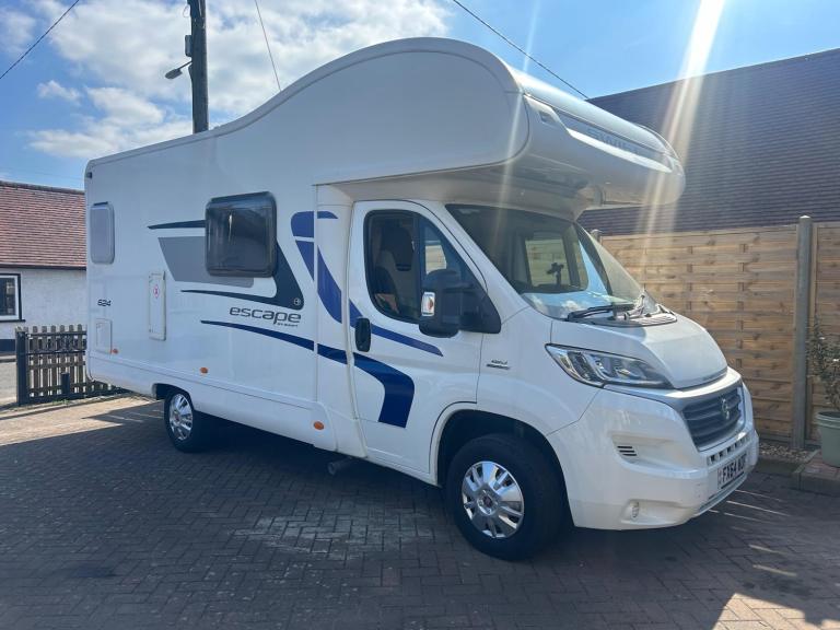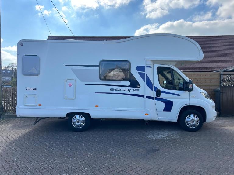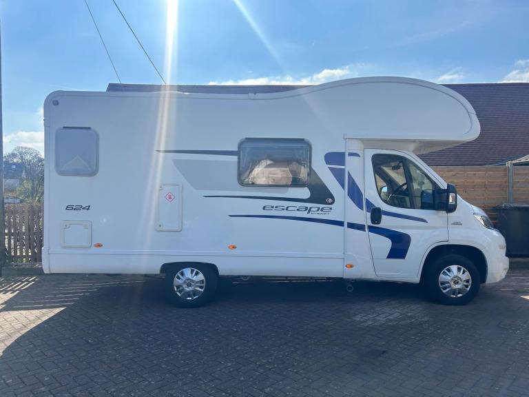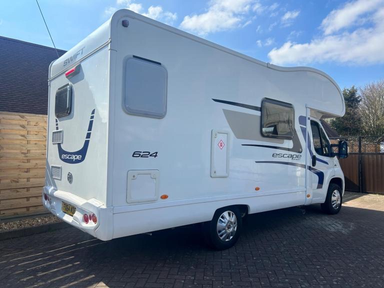HABITATION CHECK AND SERVICE JUST DONE JUNE 2025,Please note this is a private sale as this is our own Motorhome, We have the pleasure to present this fantastic Swift Escape 624, 5 berth, 4 belted motorhome purchased from Brownhills in 2022 it has travelled only, 19901 miles since being first registered in January 2015 ,Built upon Fiat Ducato 2.3L with a manual gearbox, Cab air-con and DAB radio, Once you have arrived at your destination relax in the lovely lounge area which features a 4-seat dinette and long side sofa, the large windows make this a bright and airy place to dine and relax in. At the rear of the motorhome is a well-equipped kitchen, with 3-burner hob, oven, grill, 3-way fridge and microwave . Alongside is the washroom which has a sink with mixer tap, combined toilet and Shower. Sleeping arrangements are provided by the large over cab bed, and conversion of the lounge with flexible options for up to 5 berths in total.