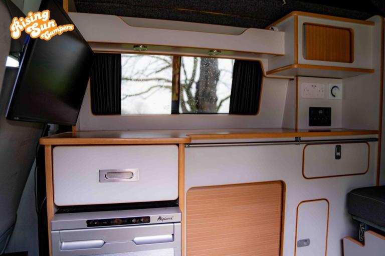 Introducing the vibrant and adventurous Volkswagen T5.1, the ultimate campervan that’s ready to take you on unforgettable journeys! This stunning yellow beauty from 2015 is not just a vehicle; it’s a lifestyle choice that embodies freedom and exploration. With a robust 2.0-litre diesel engine delivering an impressive 138 bhp and a torque of 251 lbs/ft, you’ll experience exhilarating drives whether you’re cruising down the motorway or navigating winding country roads. Designed to accommodate up to five passengers comfortably, this four-door campervan is perfect for family getaways or spontaneous road trips with friends. The manual transmission and four-wheel drive ensure that you have complete control, making every adventure a breeze, no matter the terrain. Having covered 150,868 miles and with only three previous owners, this T5.1 has plenty of stories to tell and adventures left to embark upon. It comes with a long MOT, giving you peace of mind as you hit the road. You’ll love this vehicle not just for its practicality and performance, but for the endless possibilities it offers to create cherished memories on the open road! The vehicle has had a full conversion added which includes: - 2 opening windows in privacy tint including curtains - 1 opening window in privacy tint including curtains - Complete van carpet lining - Hardwearing Altro flooring - LED spot lights - Powerpack installed for 12v and 240v power - 12v power outlet - 240v sockets - Camper Furniture including over bed locker - Insulation - 50 litre fridge - Crash Tested 3/4 Rock n Roll bed - TV installed - Austops elevating roof with 5 year warranty