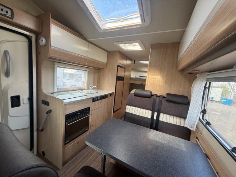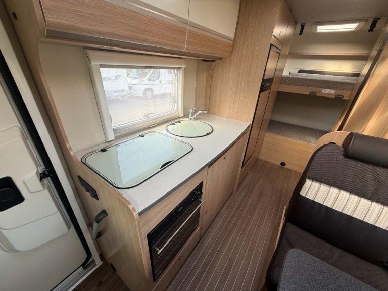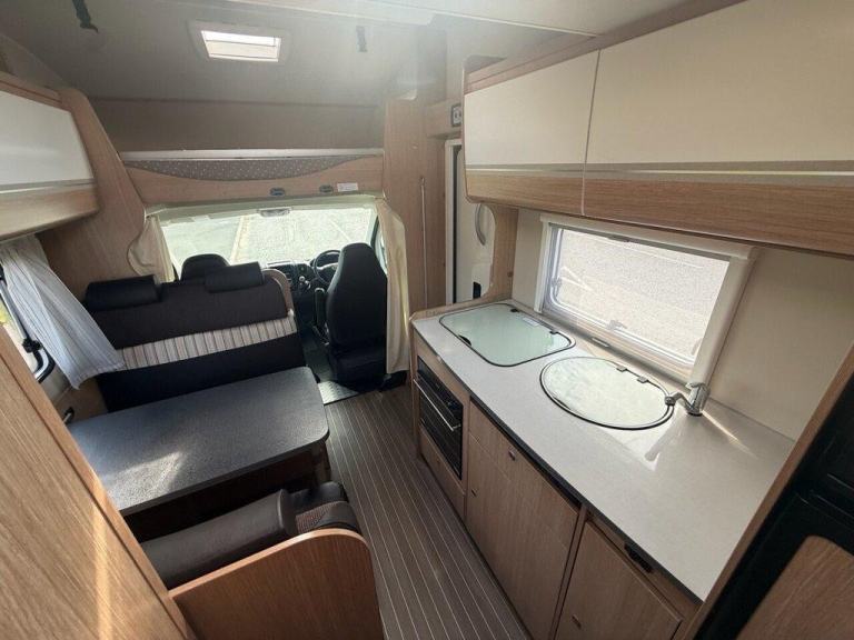2016 (16) SUNLIGHT A68 6 BERTH MOTORHOME, FATASTIC LAYOUT WITH A GREAT USE OF SPACE AND 4 EXTRA TRAVEL SEATBELTS, TOWARDS THE REAR ARE FIXED BUNKBEDS, THE BOTTOM BUNK CAN FOLD UP TO MAKE A LARGE GARAGE SPACEM SAFTY NET, LADDERS FOR EASY ACCESS, LARGE FRONT DINING AREA WITH DINING TABLE, 4 EXTRA TRAVEL SEATBELTS, THE FRONT DINING AREA ALSO MAKES A LARGE DOUBLE BED, TOWARDS THE FRONT IS A LARGE DOUBLE OVER THE CAB BED TO COMPLETE THE 6 BERTH LAYOUT, KITCHEN AREA WITH WORKTOP SPACE, BUILT IN OVEN-GRILL, 3 GAS BURNER HOB, FANTASTIC SIZE FRIDGE FREEZER, LARGE WASHROOM WITH TOILET, SINK, VANITY MIRROR, AND SEPARATE SHOWER CUBICLE, TRUME COMBI HEATING, LED LIGHTS, PRIVACEY BLINDS, LPG GAS, SKY LIGHTS, AWNING AND BIKE RACK FITTED, 3500KG, AIR CON IN THE CAB, CRUSIE CONTROL, 6 SPEED GEARBOX