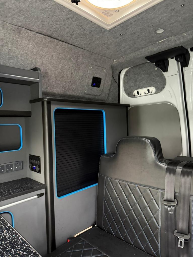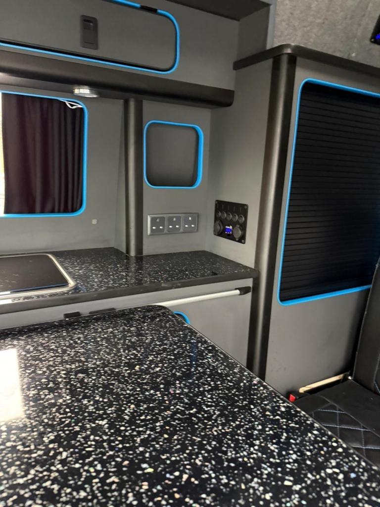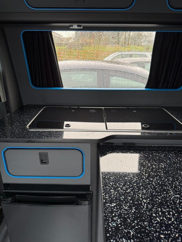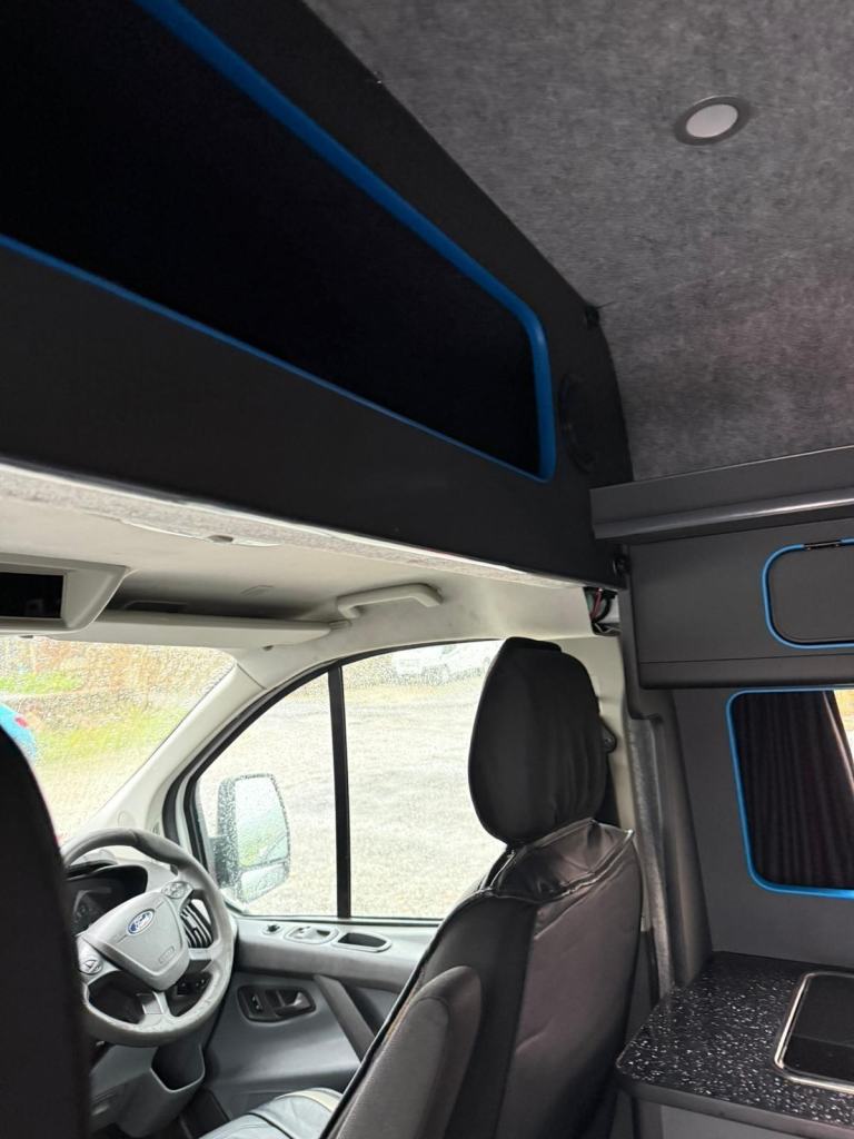 Presenting the sale of this superb, newly converted FORD custom camper........a happy campers dream This super smart camper has 2 belted seats, with a double rock'n'roll bed that is finished in black leather interior design. In the dining kitchenette you will find a stow away table for meal times, along with a fridge, hob, sink and lots of useful storage for food and beverage provisions. Blue neon lights accentuate the living area, with lots of handy plug sockets nearby! Other features include - Leather interior, 6 speed manual gearbox, rev camera, mains, NEWLY CONVERTED, and much more!