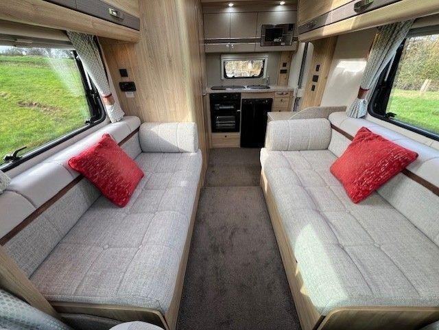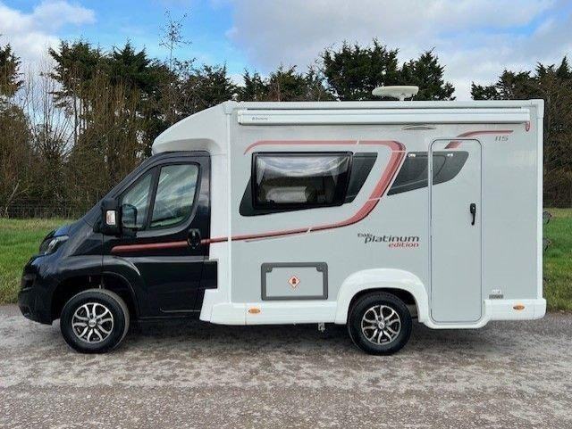 This 1 owner Elddis Titanium 115 features; 2 Berths, Front Lounge Conversion to 2 x Singles or Double Bed, Free Standing Table, Thetford 3 Burner and 1 Hotplate Hob, Thetford Oven and Grill, Sink and Drainer, Daewoo Microwave, Dometic Under Counter Fridge Freezer, Whale Heating, Avtex TV, Extensive Cupboards and Wardrobe, Removable Carpets, Twin Gas Bottle Storage, Dometic Awning, Solar Panel, Bike Carrier.