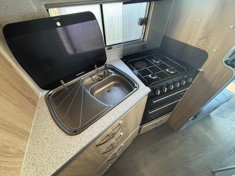 Inside this beautiful example of the Arizona you will find an End washroom with electric flush toilet and separate shower cubicle, fully equipped kitchen with oven, grill, fridge/freezer and all importantly 3 Belted seats. Ensuring everyone travels safely when exploring the country and beyond.