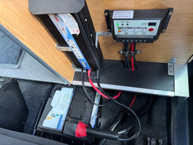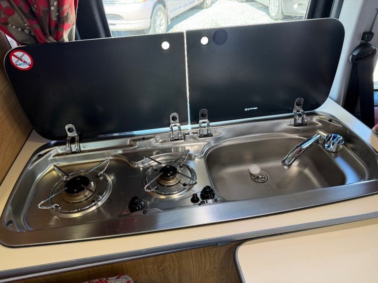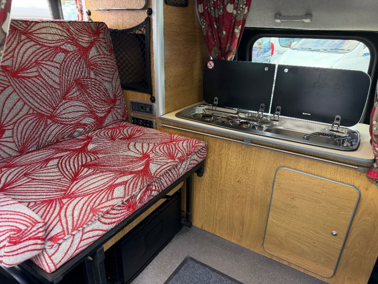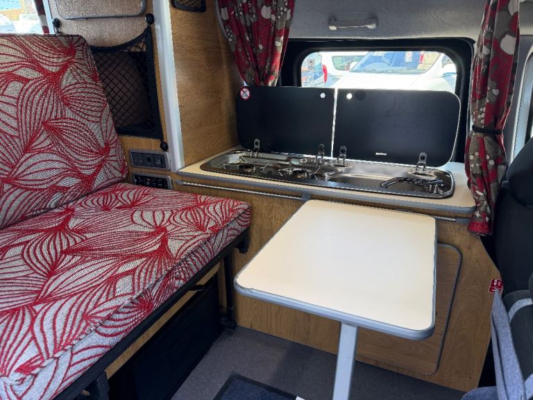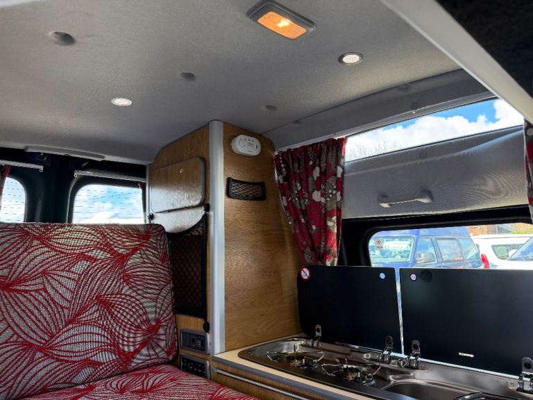 Specification to include: 12v fridge drawer, twin gas hob, sink with cold water tap, 12v leisure battery system, 240v system, removable table, privacy glass to rear, curtains, tow bar with electrics, rear parking sensors, electric windows, remote central locking, CD player, Air con (front cab), Cruise control, alloy wheels, 100w solar panel system, 12v sockets, 12v lighting, 240v hook up, 240v socket, Inverter, awning rail, roof mounted DVD player.