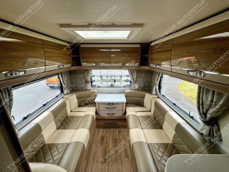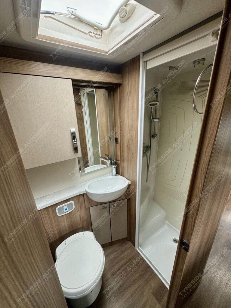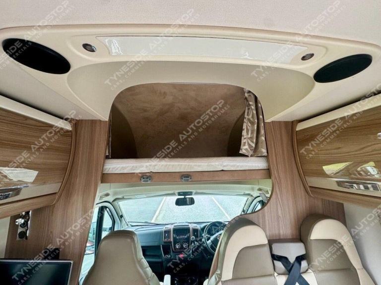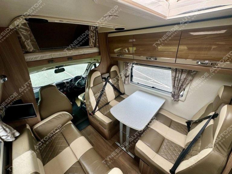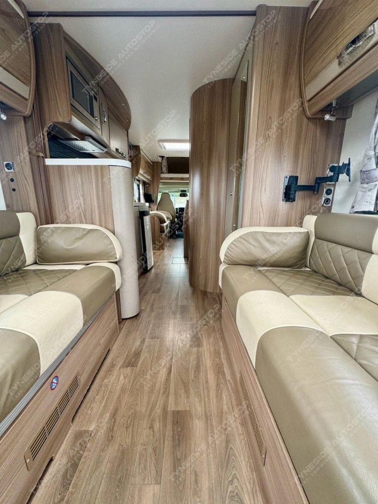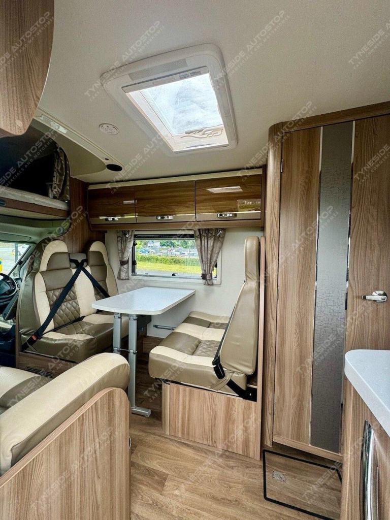 2017 SWIFT KON-TIKI 649 BLACK EDITION 6 BERTH MOTORHOME FANTASTIC SIZE AND LAYOUT WITH FOUR EXTRA TRAVEL SEATBELTS SIX IN TOTAL, TOWARDS THE REAR IS A LARGE LIVING SPACE WITH SIDE FACING SEATS THAT CONVERT INTO A LARGE DOUBLE BED, DIVIDING BLIND TO MAKE THE BEDROOM PRIVATE, FRONT DINING AREA WITH TABLE THAT CONVERTS INTO A LARGE DOUBLE BED, AND A LARGE OVER CAB DOUBLE BED TO COMPLETE THE SIX BERTH LAYOUT, GOOD SIZE KITCHEN AREA WITH WORK TOP SPACE, OVEN-GRILL, 3 GAS BURNER HOB AND ONE ELECTRIC PLATE HOB, UNDER BENCH FRIDGE, GEAT SIZE WASHROOM WITH A WALK IN SHOWER, TOILET, SINK AND VANITY MIRROR. WARDROBE SPACE, FANTASTIC STORAGE OPTIONS ALL ROUND, THREE PIN PLUGS, LED LIGHTS, ALDE HEATING, BIKE RACK, AWNING, REVERSING CAMERA, SIX SPEED GEARBOX, CRUISE CONTROL, AIR CON IN THE CAB, FULL LEATHER, 5000KG