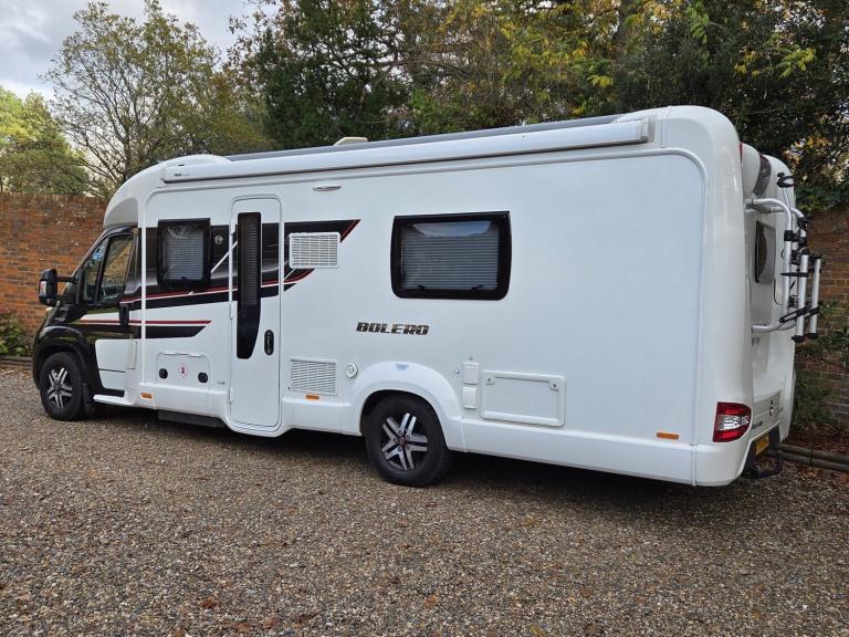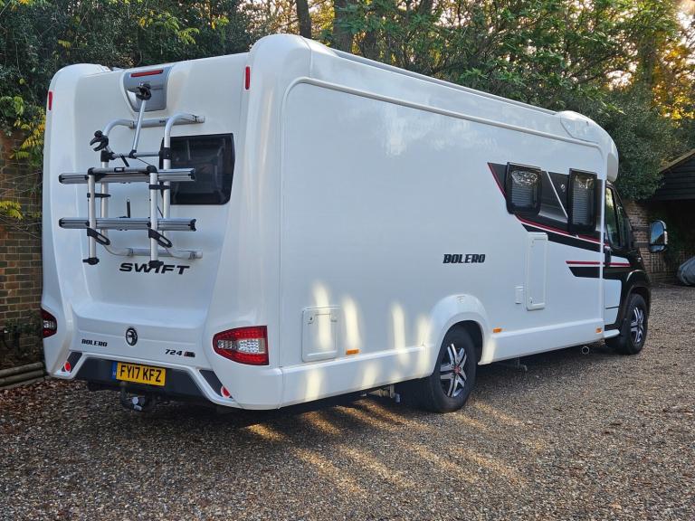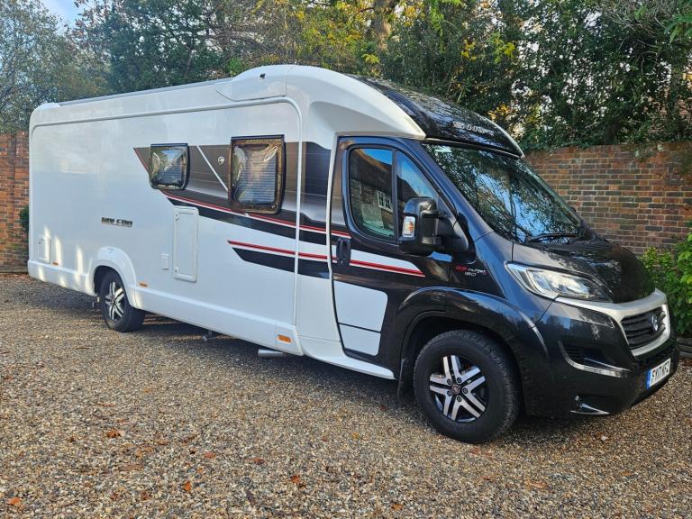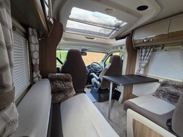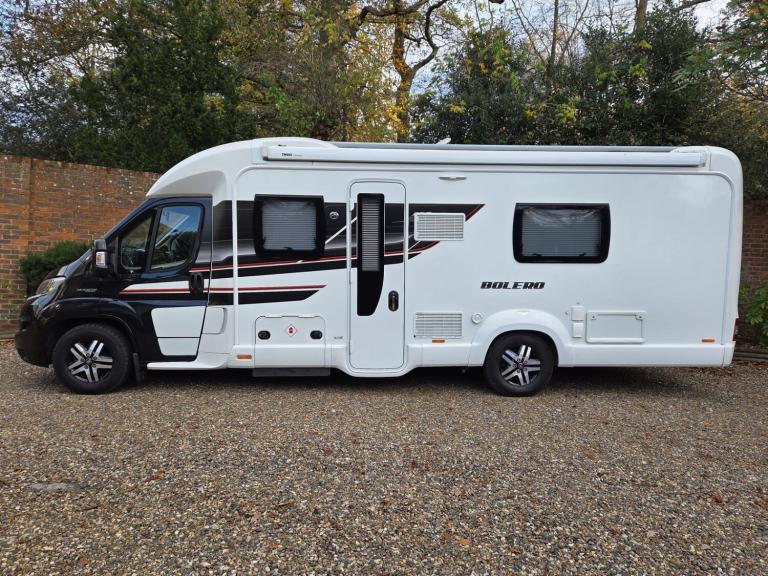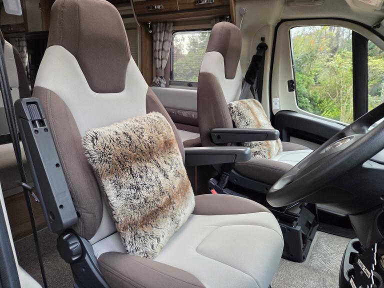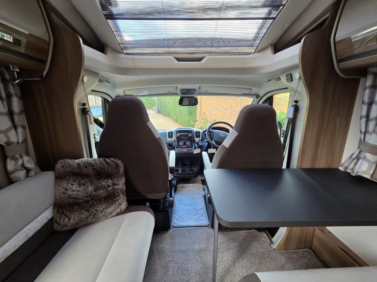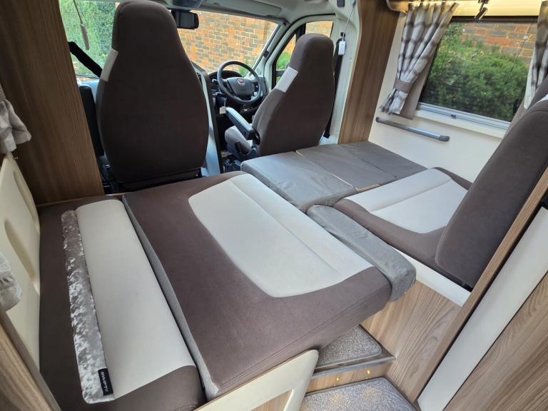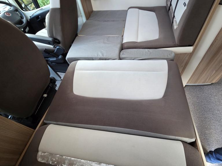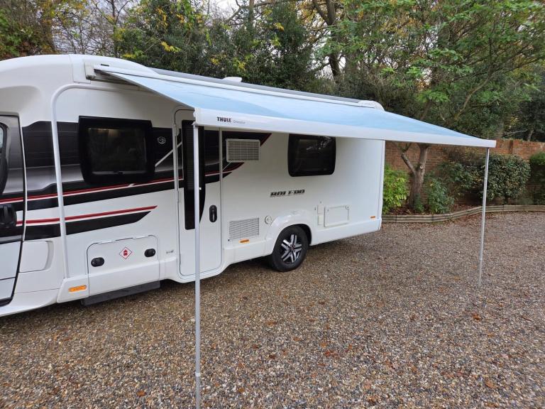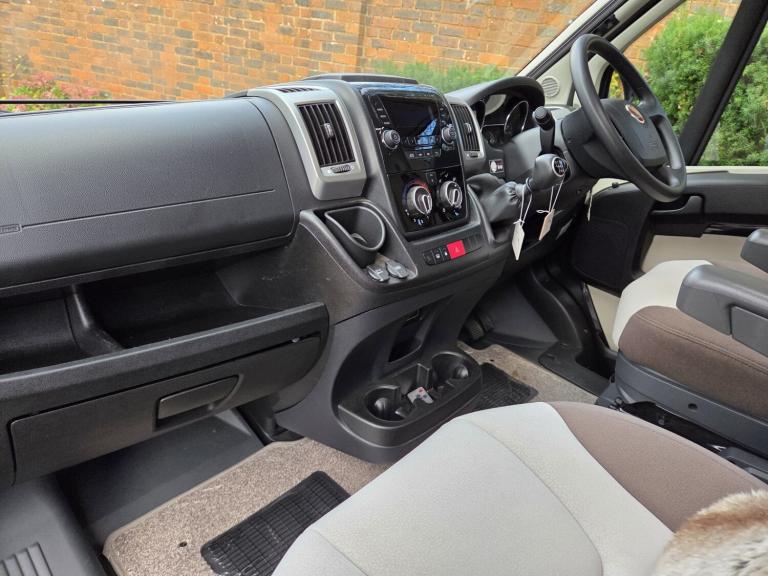 Valid Habitation Check, Twin Gas Cylinder Supply, Recent AC Installation in the Rear, Bike Rack, Tow Bar, Isolated Security Module, Thule Omnistor Awning, Captain Swivel Seats, Opening Tilt Sunroof with Blind, 4 berth accommodation, with 4 belted seats (including drivers). French bed and half dinette conversion. The Kitchen contains a dual fuel hob, Oven, Microwave, Sink, Fridge/ Freezer. The bedroom has a separate shower washroom with shower, sink, vanity, and cassette toilet.240v mains electricity connection, hot water and heating. Pleated blinds and fly screens fitted to the opening habitation windows. External BBQ point and external storage access. Twin Reversing Camera, Cruise Control, Bluetooth, Multi-Function Steering Wheel, Air Conditioning, Alloy Wheels with New Tyres All Round. 2 Owners From New!Low Rate Finance Options Available! Any inspection or test drive is welcome. New in stock!