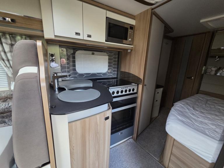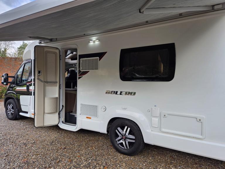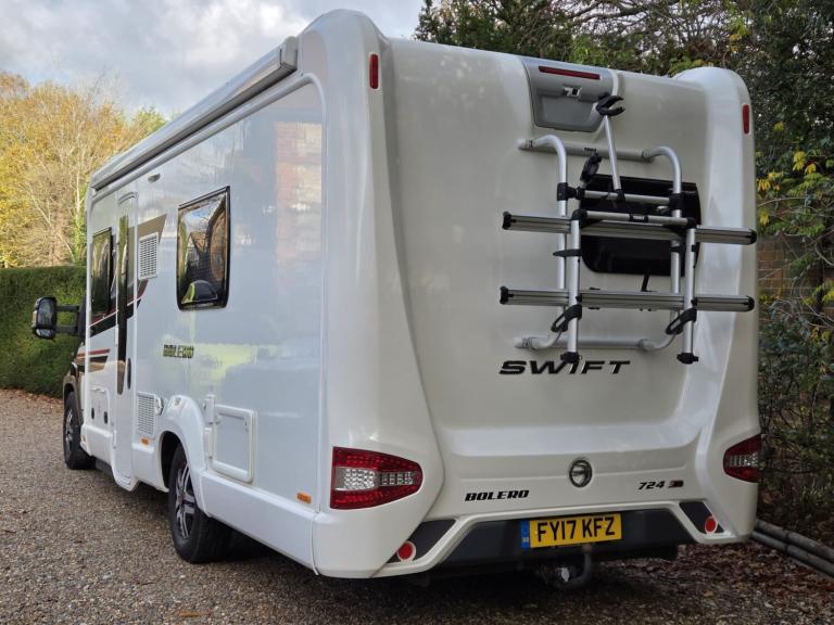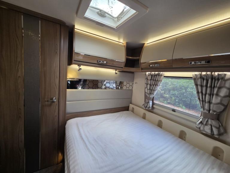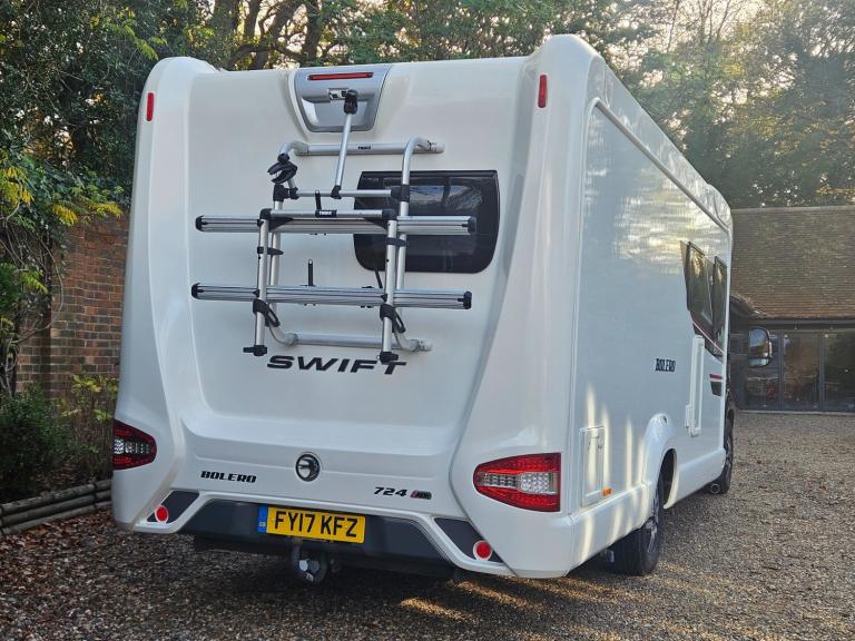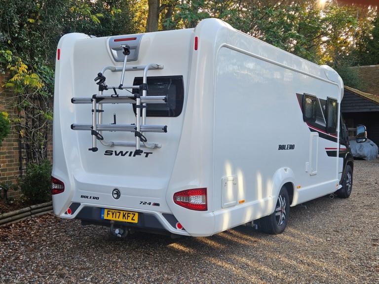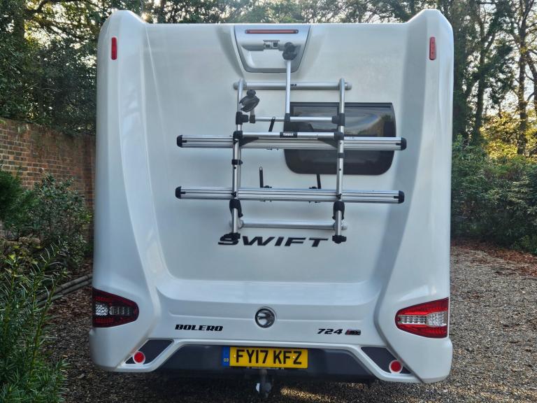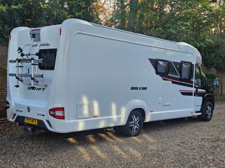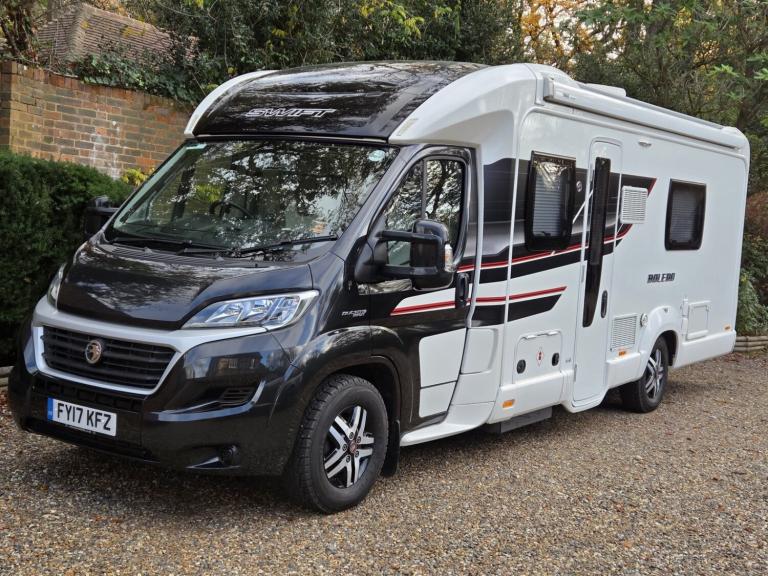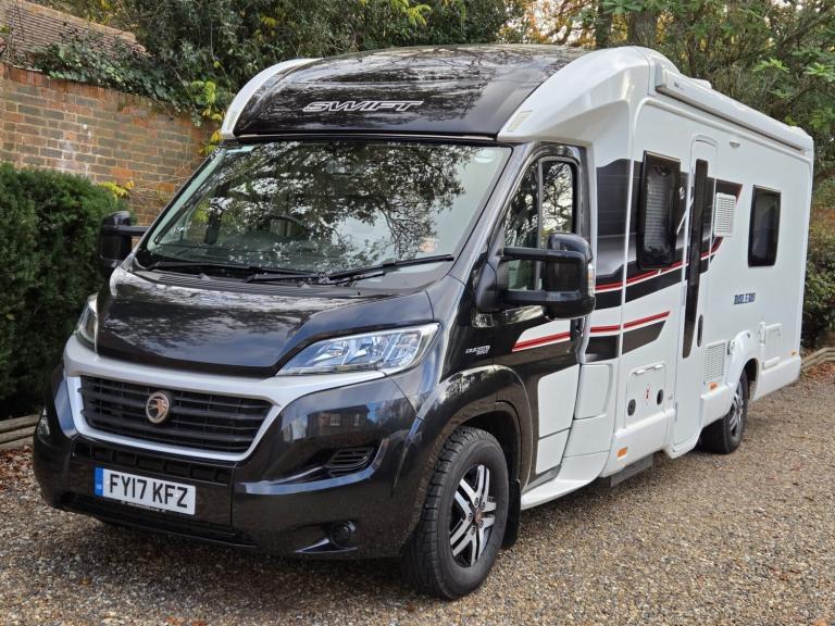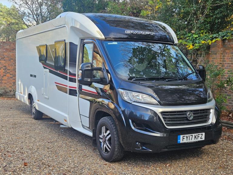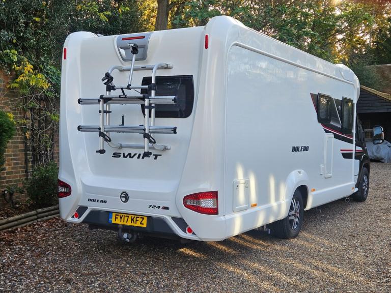 Valid Habitation Check, Twin Gas Cylinder Supply, Recent AC Installation in the Rear, Bike Rack, Tow Bar, Isolated Security Module, Thule Omnistor Awning, Captain Swivel Seats, Opening Tilt Sunroof with Blind, 4 berth accommodation, with 4 belted seats (including drivers). French bed and half dinette conversion. The Kitchen contains a dual fuel hob, Oven, Microwave, Sink, Fridge/ Freezer. The bedroom has a separate shower washroom with shower, sink, vanity, and cassette toilet.240v mains electricity connection, hot water and heating. Pleated blinds and fly screens fitted to the opening habitation windows. External BBQ point and external storage access. Twin Reversing Camera, Cruise Control, Bluetooth, Multi-Function Steering Wheel, Air Conditioning, Alloy Wheels with New Tyres All Round. 2 Owners From New!Low Rate Finance Options Available! Any inspection or test drive is welcome. New in stock!