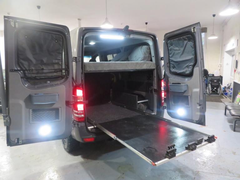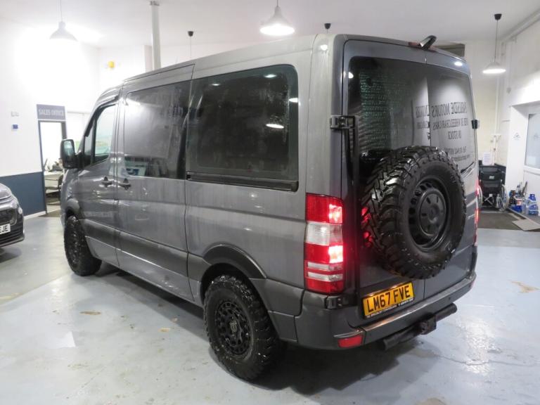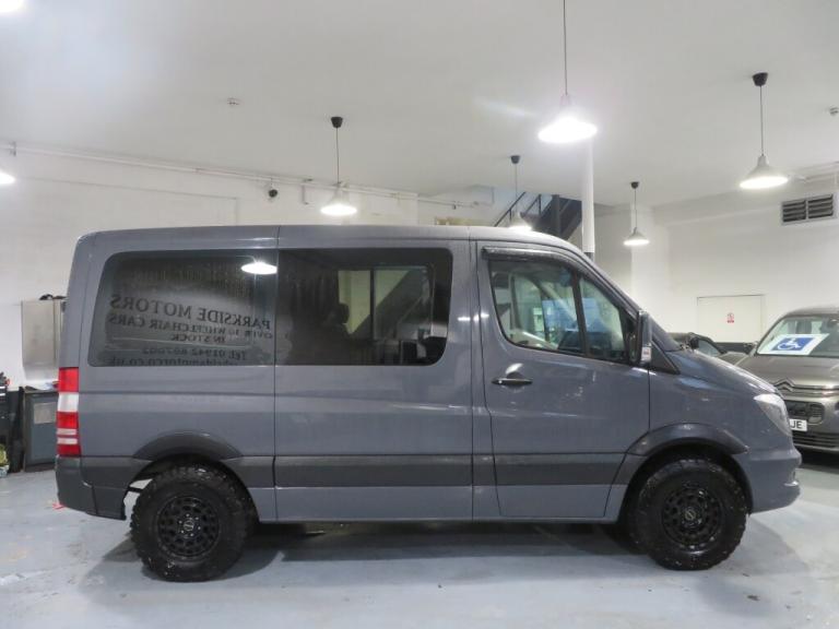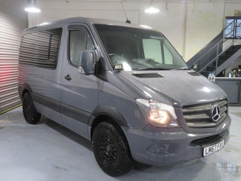 45000 miles. Here we have a stunning Mercedes Sprinter automatic camper van, finished in non metalic Dolphin grey, 3 berth, 2 front swivel seats, four seat rear bench with storage underneath, kingsize fixed bed with memory foam matress, offroad alloys with all terrain tyres, rear wheel rack, 5 seater, fold out sink space for hob, rear slide out bike rack can hold five bikes under the bed, lesure battery, night heater, van x curtains and blinds, portaloo fits under rear bench seat, led lighting and usb charging points, colour coded front bumper and 4x4 wheel arches, 1 former keeper with full service history, my own vehichle for the last 2 years, We are open 6 days a week, Monday-Friday 9am-5pm Saturday 10am-12pm by prior appointment, debit cards welcome, P/X a pleasure, for our full stock list go to [Website URL removed], Parkside Motors, Bolton road, Atherton, M46 9RB Mobile [Phone number removed]