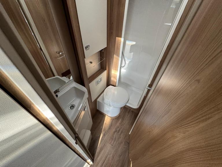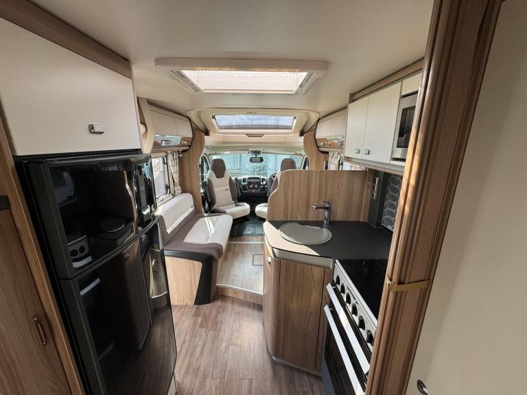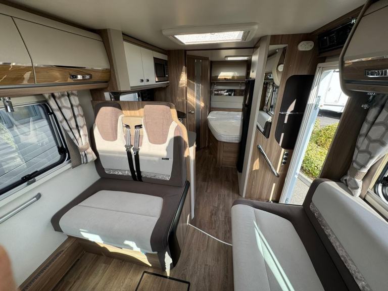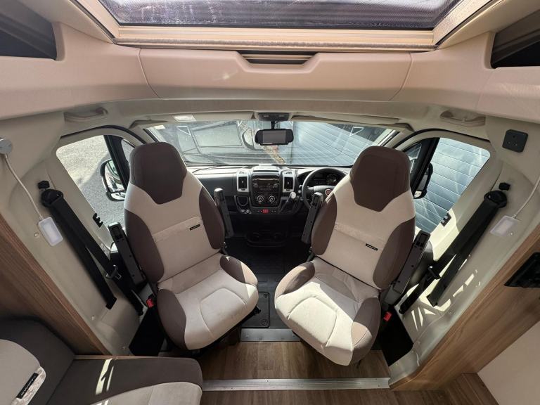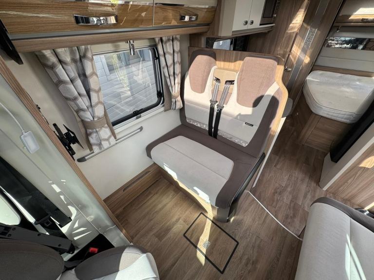 This highly spec’d example of the 684 boasts the optional extra ‘Travel Seat’ layout giving you two comfy travel seats that make up a good sized double bed in the evenings.