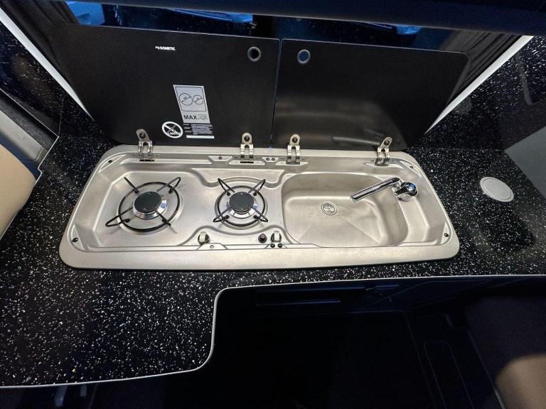 Rock & Roll Pull-out Bed - Lounge conversion, Pull down Pop top roof| Cream Leather Seats | Cruise Control| Dometic Hob & Sink | Isotherm Fridge | Awning| Privacy Glass | Russel Hobbs Microwave.