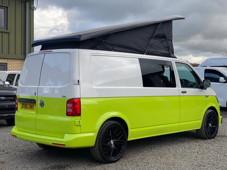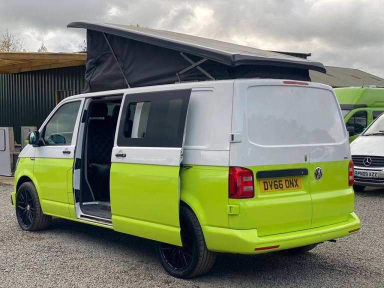 PODIUM PCL IS DELIGHTED TO PRESENT A VW TRASNPORTER MOTORHOME FRESHLY CONVERTED, 4 BERTH AND 5 SEAT BELTS, REAR SPACIOUS LOUNGE A ROCK & ROLL BED AND A POP UP ROOF FINSHED IN GLOSS BLACK, M1 THE VULCAN RECLINER 1100mm DOUBLE SEAT BED WITH QUICK RELEASE MECHANISM, HALF PAINTED IN ACID GREEN WHICH MAKE IT STANDS OUT, ALL ELECTRICAL CONNECTIONS DONE, 2 BURNER STOVE CONNECTION, LARGE SINK INSTALLED, WINDOWS, AMPLE STORAGE, JUST SERVICED, MOT VALID UNTIL 05/06/2026, 1 PREVIOUS OWNER, SERVICE HISTORY WITH 4 SERVICES. Step into the world of Podium PCL, where quality, trust, and expertise come together to create a refined vehicle-buying experience. We proudly showcase a wide selection of over 200 meticulously handpicked vehicles, including Cars, SUVs, Vans, Motorhomes, and Campervans. Each vehicle is carefully sourced by our expert purchasing team, backed by over 12 years of industry experience, and undergoes thorough checks to ensure the highest standards. All our vehicles are HPI clear and supported by the AA Dealer Promise, offering complete peace of mind with every purchase. Enjoy the added benefit of 12 months of complimentary AA breakdown cover, along with a 3-month warranty included within the advertised price, extendable up to 3 years for long-term reassurance. We also offer swift vehicle deliveryfree within a 60-mile radius and just £2 per mile thereafter (Scotland rates may vary). Once payment is received, we aim to deliver your vehicle within 48 hours. Visit Podium PCL and discover automotive excellence today. Come See Us: The Old Wood Yard Forest Road, Hanslope Milton Keynes, MK19 7DE 01908 062 890 [Phone number removed] ( WHATSAPP) [Email address removed. Click Email button to contact us.] [Website URL removed] Opening Hours MonSat: 9:00 AM 6:00 PM Sun: 9:30 AM 4:00 PM Podium PCL Where Trust Drives Performance.12v Power, ABS, Air Con, Alarm, Alloy Wheels, Battery Charger, Blinds, Blown Air Heating, Cocktail Cabinet, End Lounge, External 240v, External Battery Locker, Fixed Bed, Fresh/Waste Water Tank, Gas Hob, Immobiliser, Laminated Floor Construction, Leisure Battery, On board water tank, Sink, Warranty