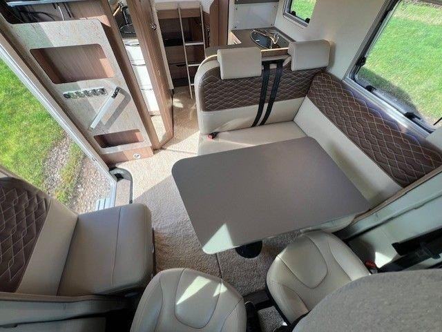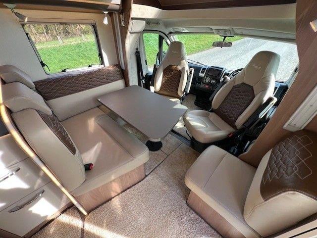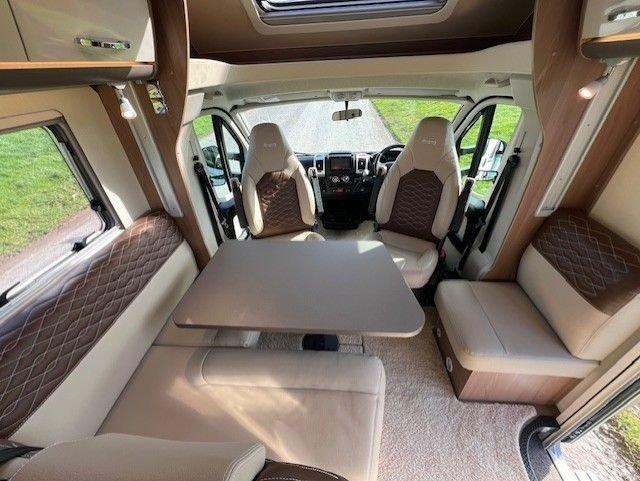 The Fiat Ducato Chassis is fitted with the 2.3 150 diesel engine and 6spd automatic gearbox. The specification includes; Pioneer DAB Radio, Bluetooth, Air Conditioning, Leather Steering Wheel, Cruise Control, Electric Mirrors, Rear Camera, Swivel Seats, 2 Keys and 16" Alloy Wheels