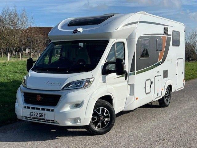 This 2018 (18plate) 1 owner Burstner Lyseo 690 G Harmony Line features; 4 Berths, 4 Belted Seats, Rear Fixed Bed (2 x Single or Large Double), Electric Drop Down Bed, Leather Seated Lounge, Avtex Pro TV, Large Table, Mid Bathroom, 3 Burner Hob, Oven and Grill, Sink and Drainer, Thetford Tall Fridge Freezer, Removable Carpets, Extensive Cupboards Throughout, Wardrobe and Storage Under Rear Bed, Electric Step, Truma Heating, Twin Gas Bottle Storage, Thule Awning, Solar Panel, BBQ Point.