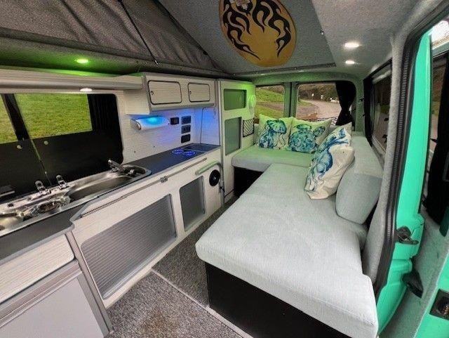 This stunning Volkswagen LWB Campervan features; 4 Berths, L-Shape Lounge Converting To Double Bed, Pop Top Double, 2 Burner Hob, Dometic Under Counter Fridge Freezer, Extensive Cupboards, Internal Gas Locker inc Bottle, Removable Table, Mains Hook Up Socket, Diesel Heater, Removable Porta-Potti inc Carrying Box, Camp Star Blow Up Mattress, Removable Carpets, Memory Foam Sofa Cushions, Curtains, TV, Solar, Hook-Up Cable, Levelling Chocks, Waste Water Container.
