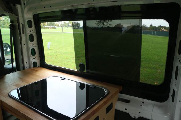 2x Side Opening Side windows, plus rear door windows with magnetic window blind system